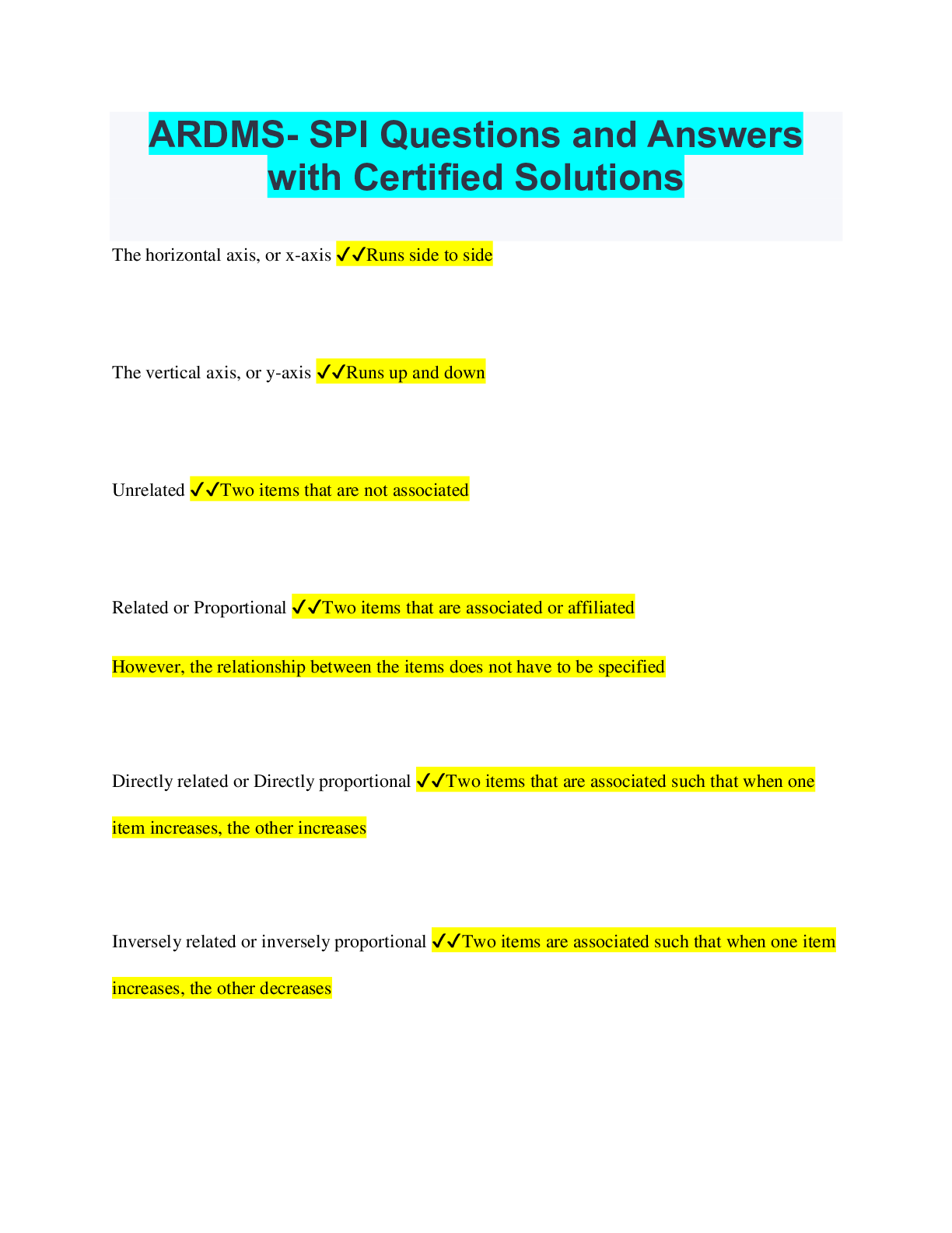 Social Sciences > QUESTIONS & ANSWERS > ARDMS- SPI Questions and Answers with Certified Solutions (All)