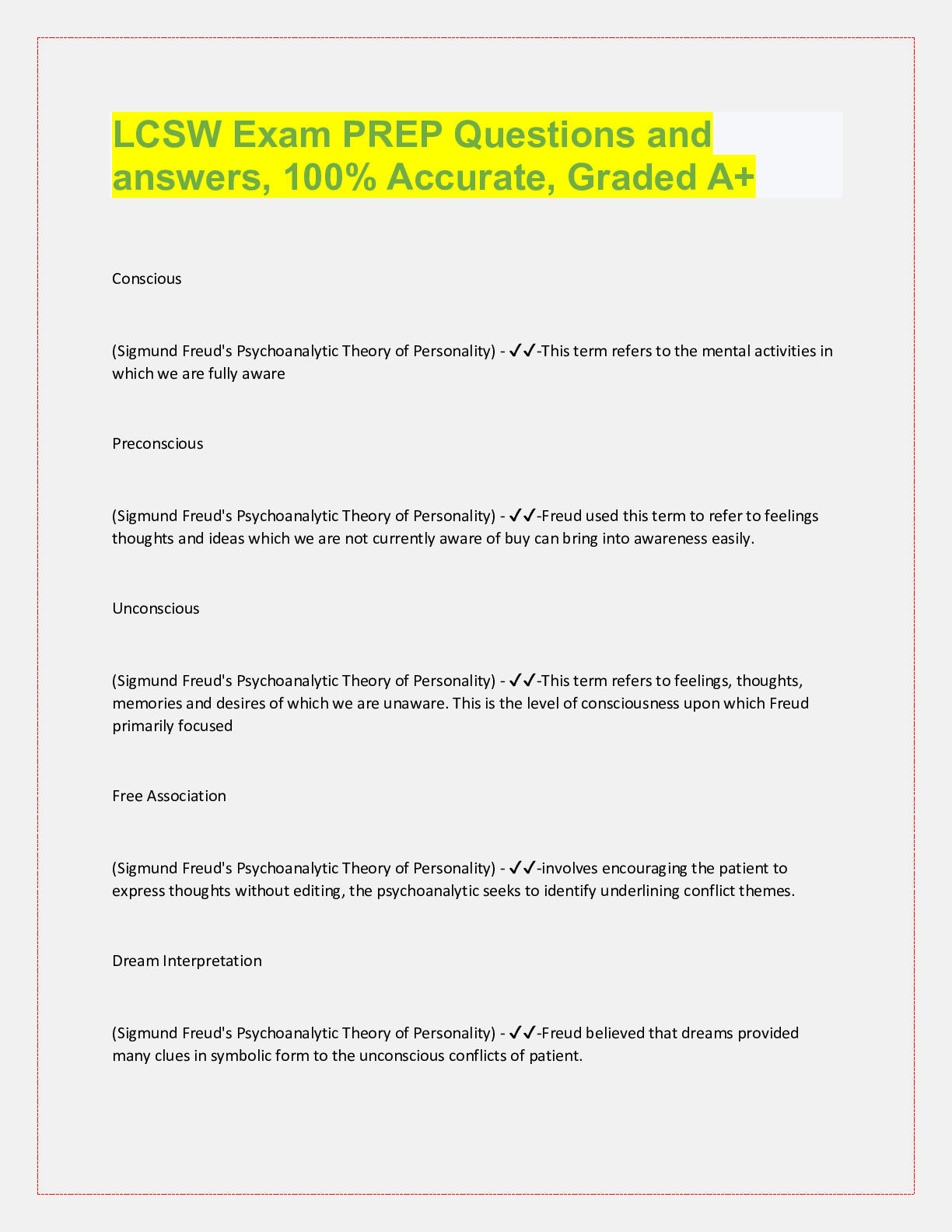 Social Sciences > QUESTIONS & ANSWERS > LCSW Exam PREP Questions and answers, 100% Accurate, Graded A+ Conscious (All)