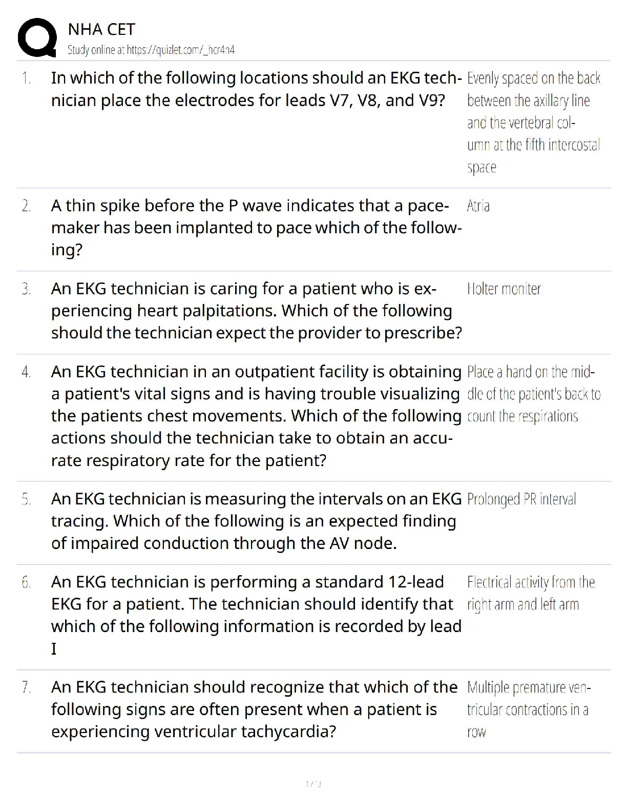 NHA CET > EXAM > NHA CET EXAM PREP FOR EKG CERTIFICATION COURSE 2023 GUIDE SOLUTION. (All)