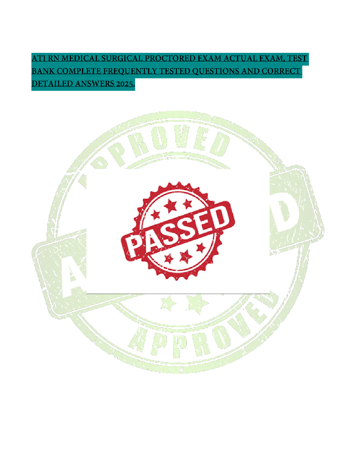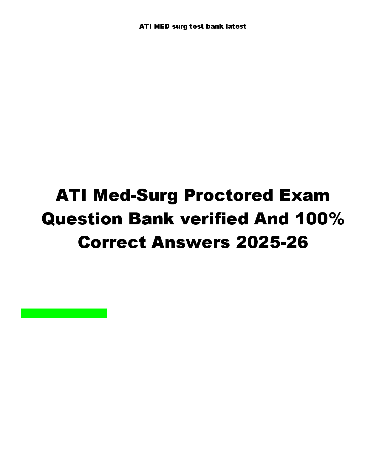 ATI MED SURG PROCTORED > EXAM PROCTORED > ATI MED SURG PROCTORED FINAL UPDATED TEST EXAM LATEST 2026 STUDY QUESTIONS WITH VERIFIED ANSWERS MULTIPLE CHOICES 100% GUARANTEED PASS | RATED A+ (All)