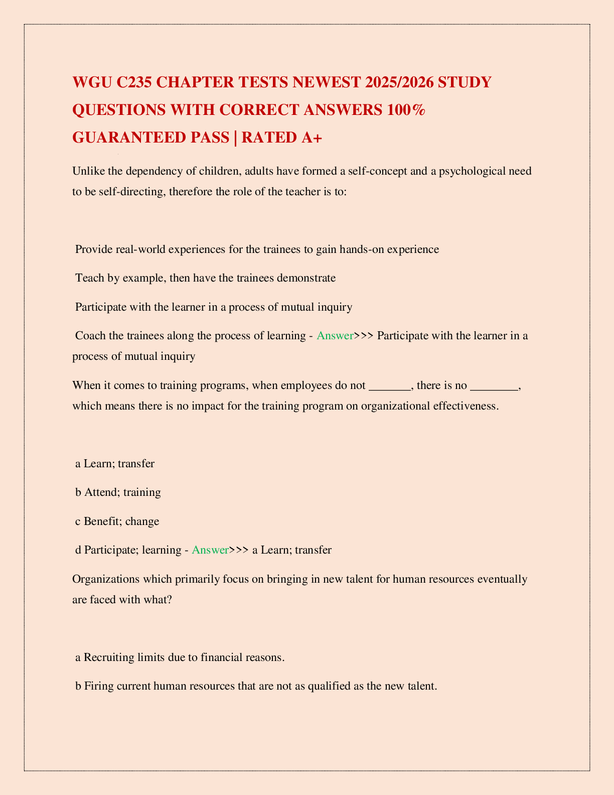 WGU C214 Financial Management > EXAMs > WGU C235 CHAPTER TESTS NEWEST 2025/2026 STUDY QUESTIONS WITH CORRECT ANSWERS 100% GUARANTEED PASS | RATED A+ (All)