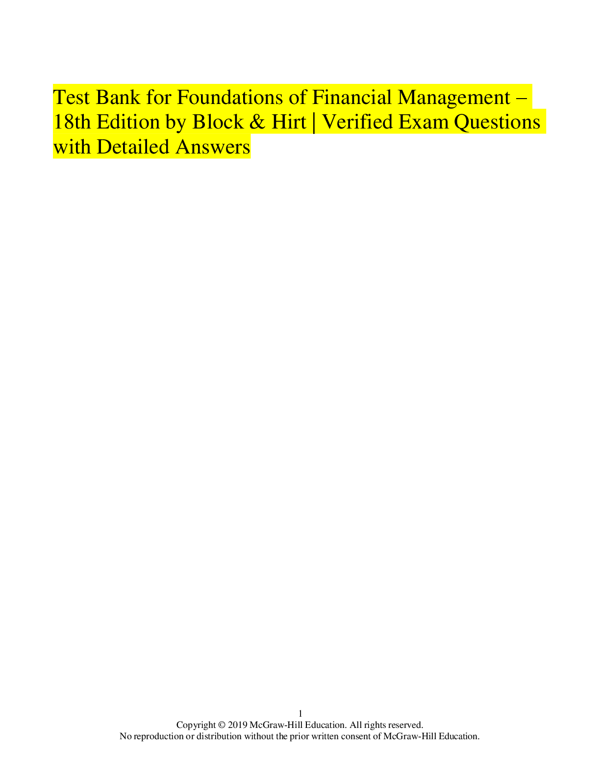 WGU C214 Financial Management > TEST BANKS > Test Bank for Foundations of Financial Management 18th Edition by Block & Hirt A+ (All)