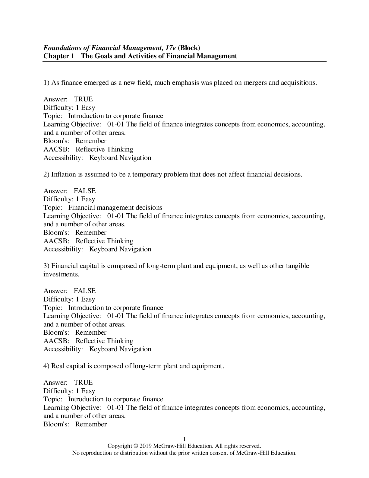 WGU C214 Financial Management > TEST BANKS > Test Bank for Foundations of Financial Management, 17th Edition by Block A+ (All)