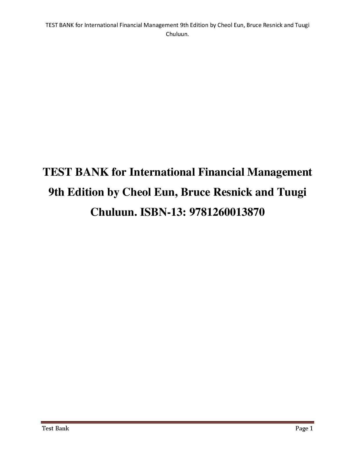 WGU C214 Financial Management > TEST BANKS > TEST BANK for International Financial Management 9th Edition by Cheol Eun,Bruce Resnick and Tuugi Chuluun. ISBN-13: 9781260013870 A+ (All)
