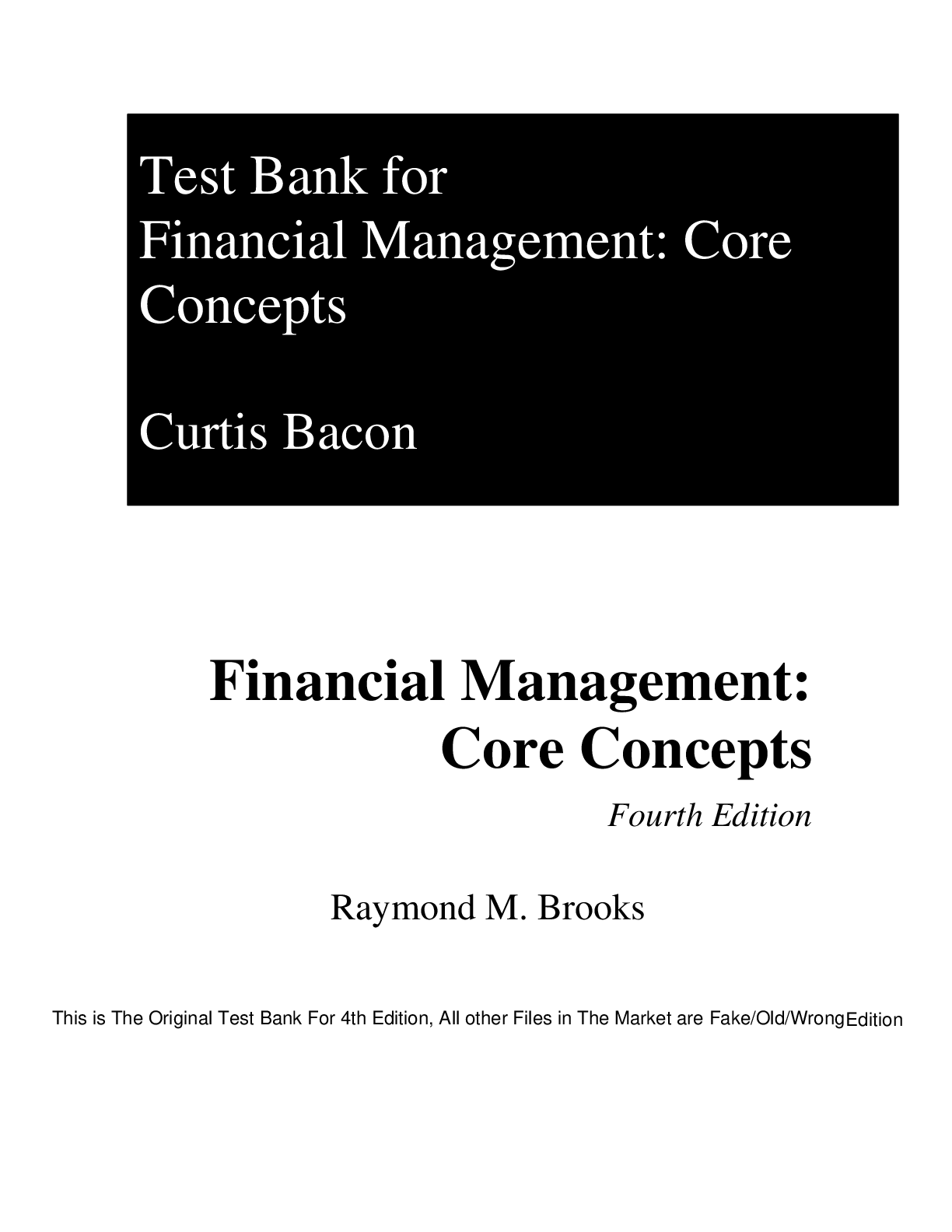 WGU C214 Financial Management > TEST BANKS > Test Bank For Financial Management Core Concepts 4e Raymond Brooks (All)