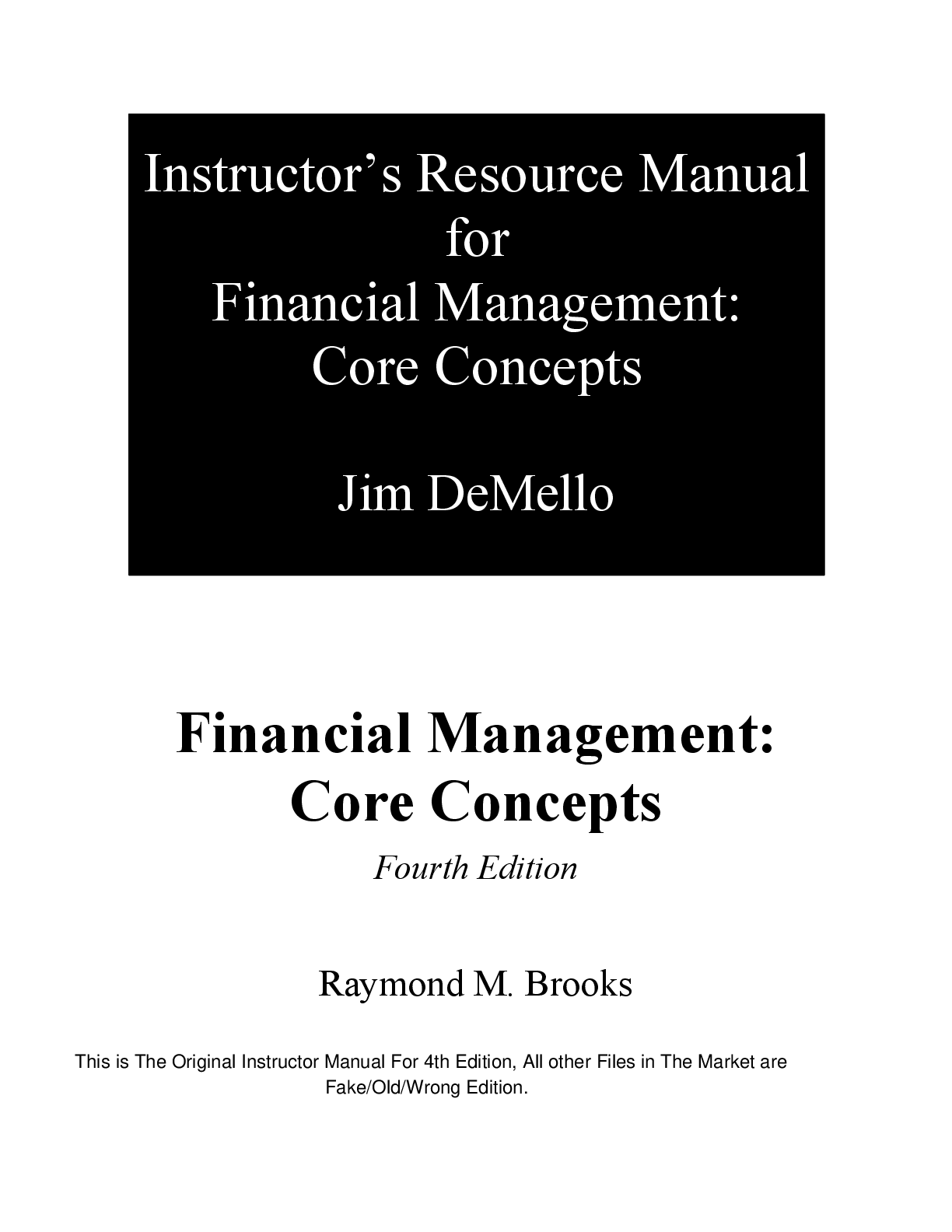 WGU C214 Financial Management > INSTRUCTOR MANUALS > Instructor Manual For Financial Management Core Concepts 4e Raymond Brooks (All)