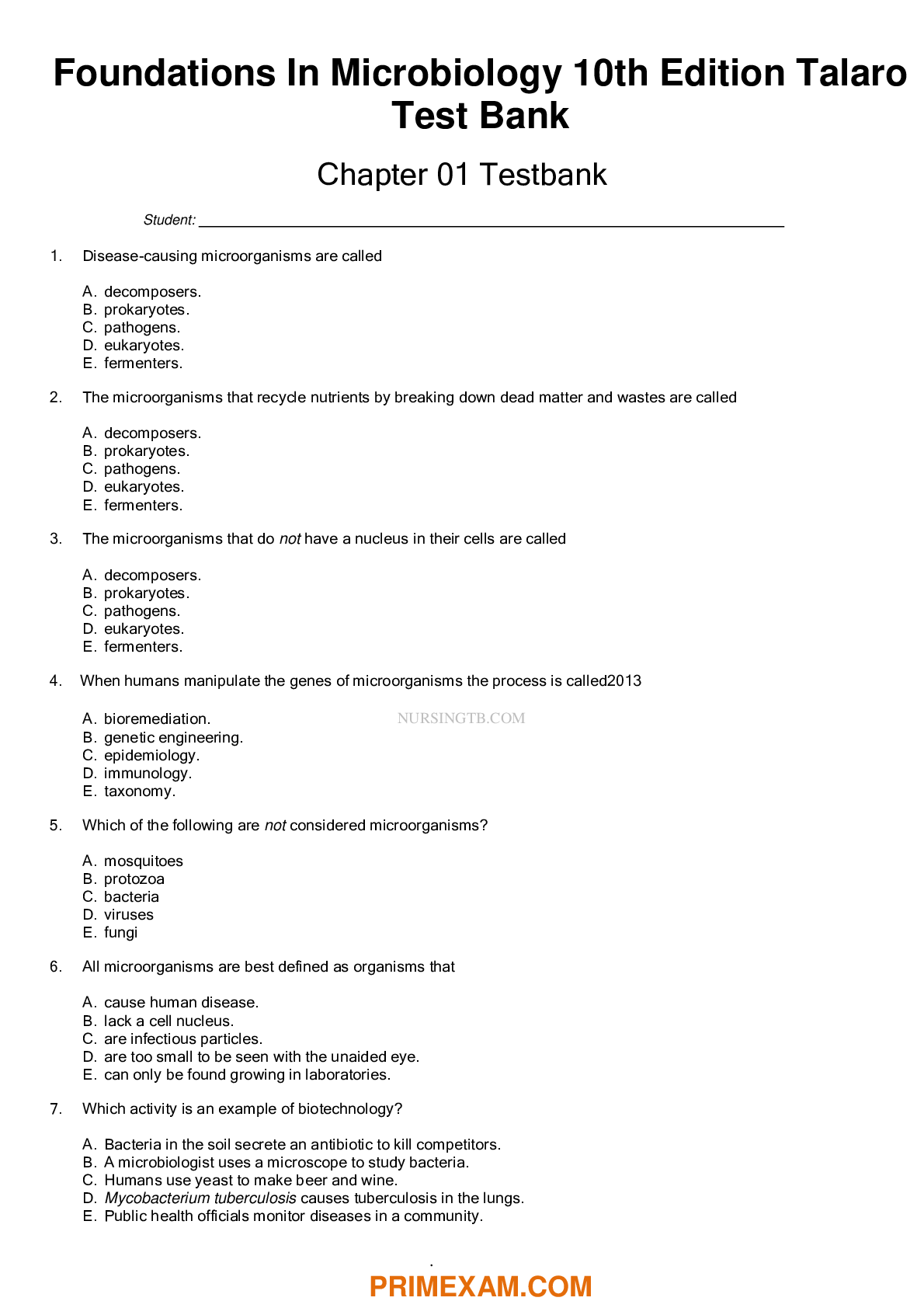Microbiology > TEST BANKS > Foundations In Microbiology 10th Edition by Park Talaro, Barry Chess | TEST BANK (All)