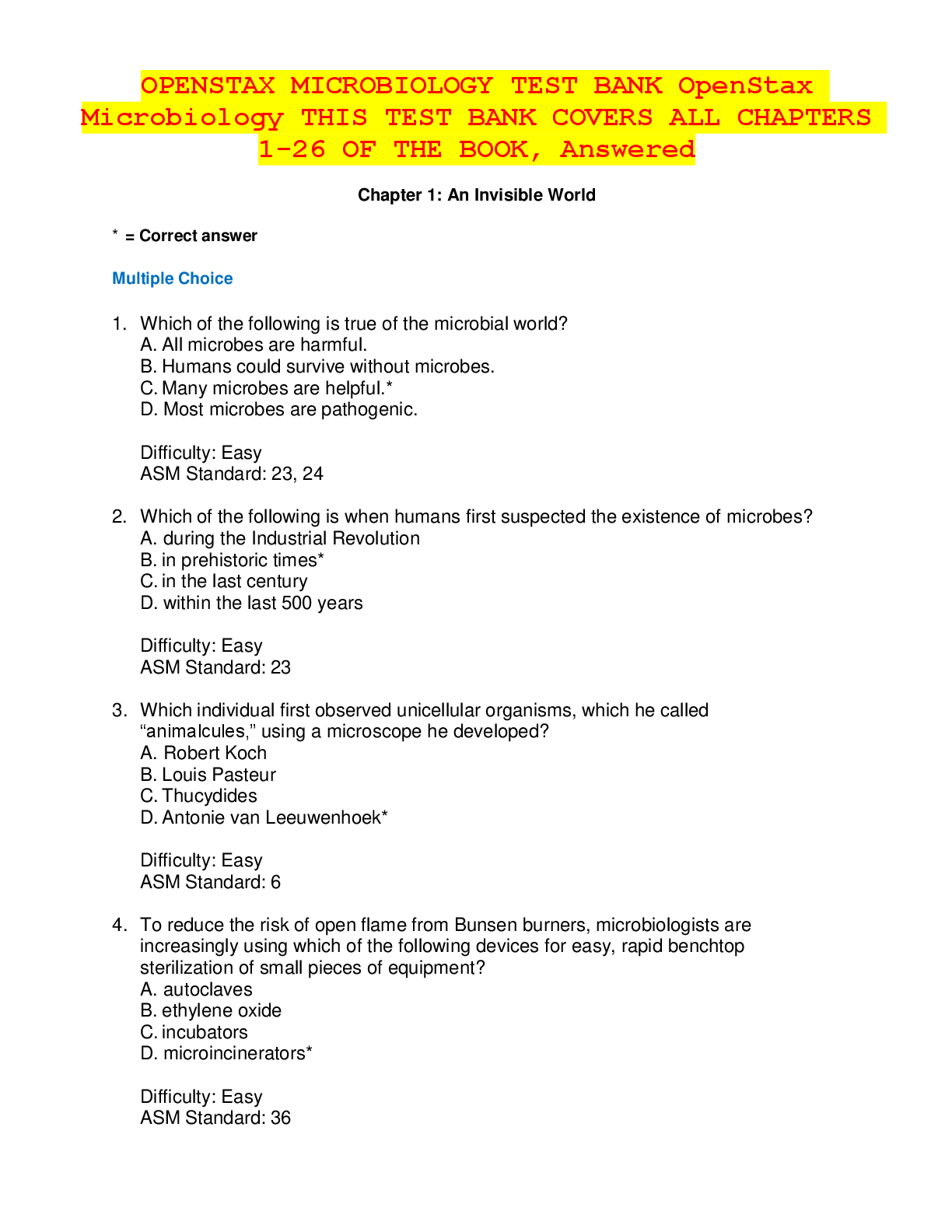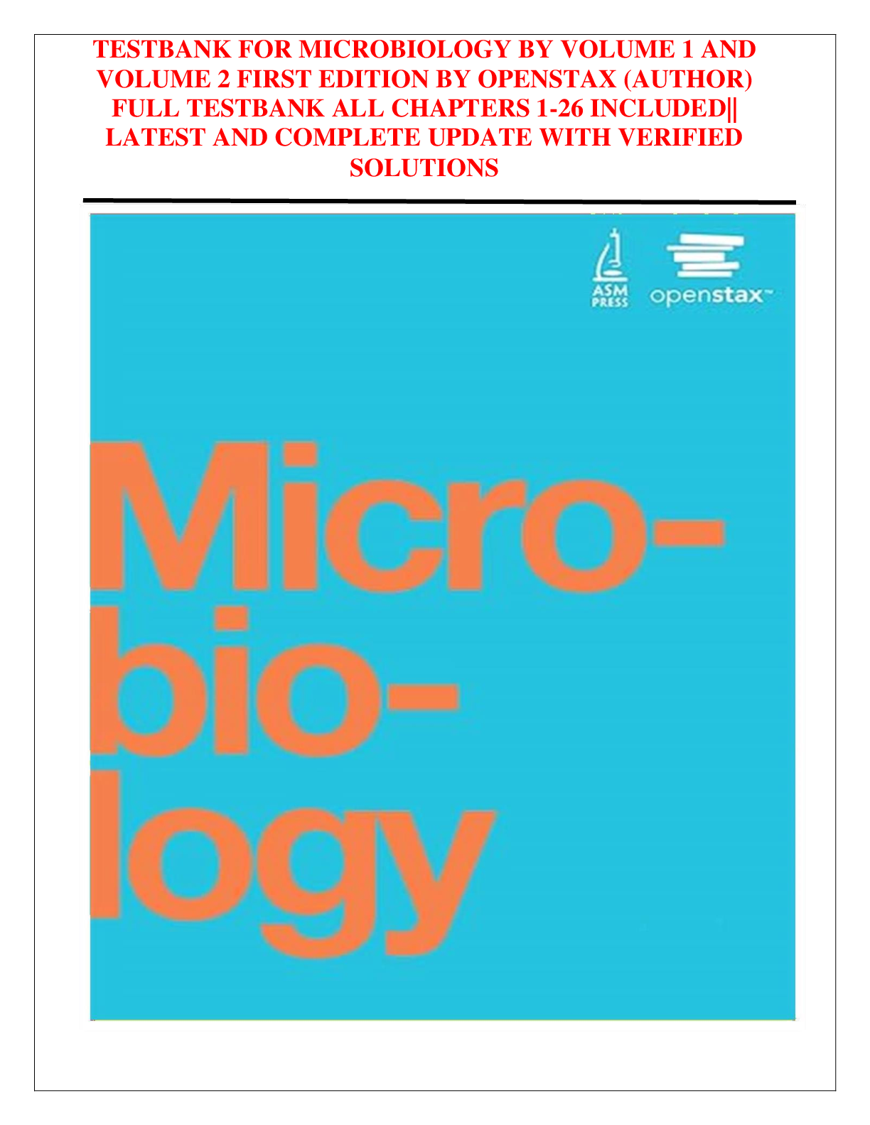 Microbiology > TEST BANKS > TEST BANK FOR MICROBIOLOGY BY VOLUME 1 AND VOLUME 2 FIRST EDITION BY OPENSTAX (AUTHOR) FULL TESTBANK ALL CHAPTERS 1-26 INCLUDED|| LATEST AND COMPLETE UPDATE WITH VERIFIED SOLUTIONS (All)