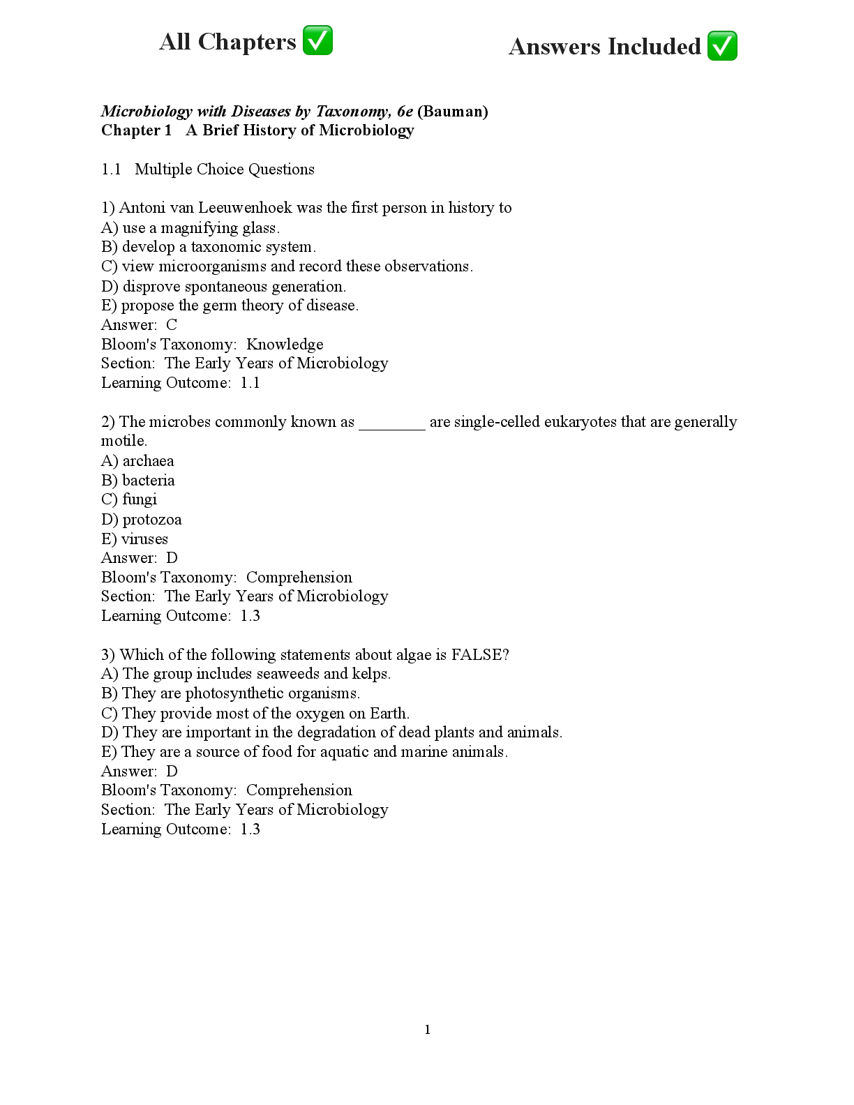 Microbiology > TEST BANKS > Test Bank for Microbiology with Diseases by Taxonomy, 6th Edition by Bauman A+ (All)