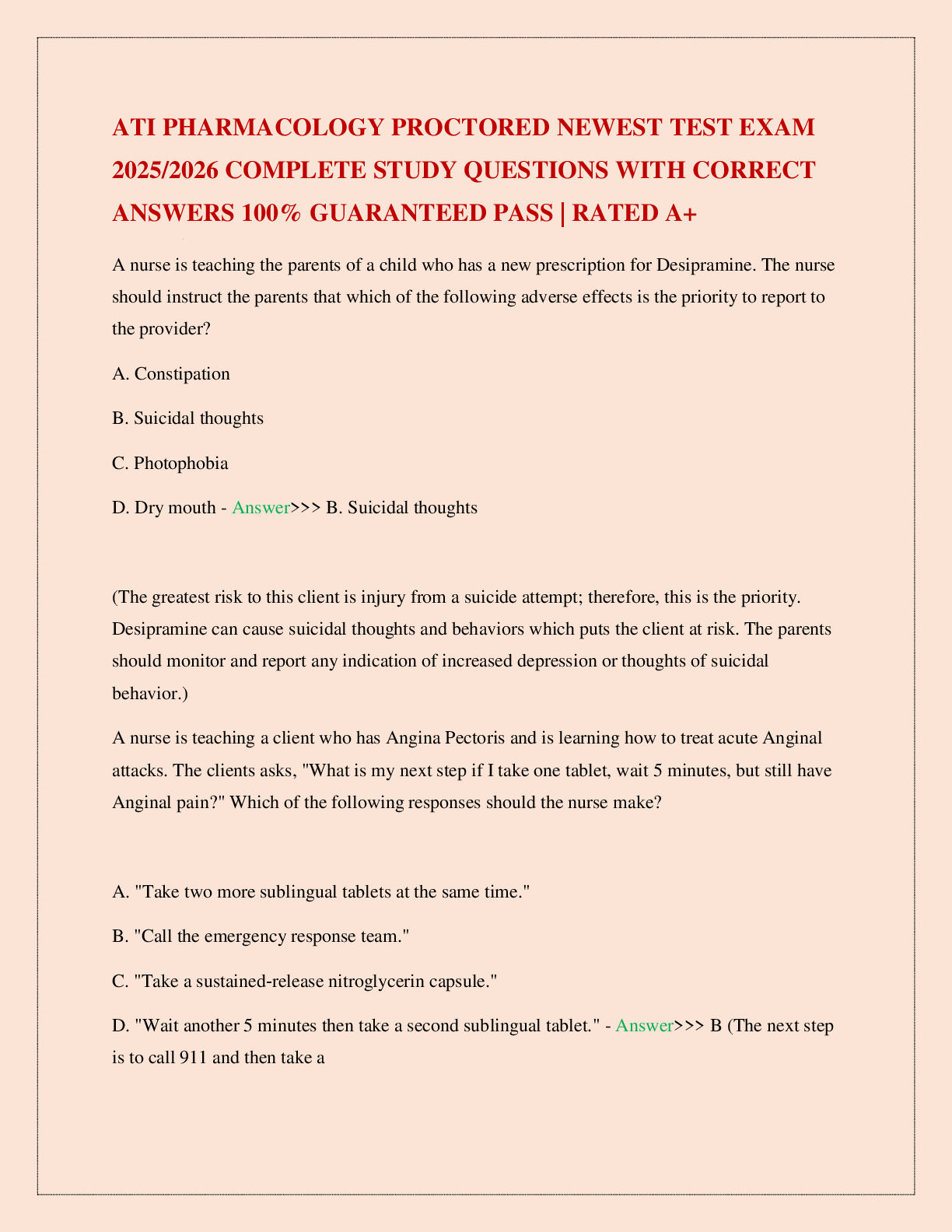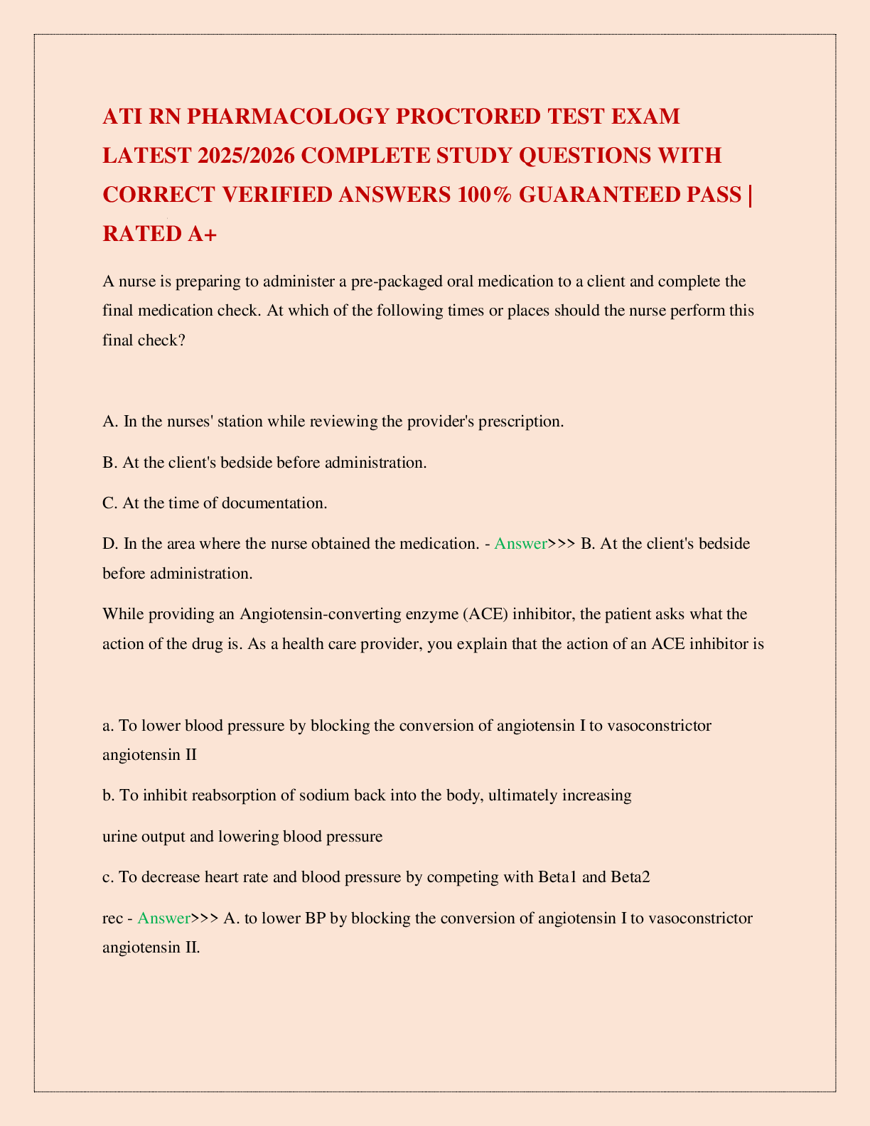 ATI RN PHARMACOLOGY > EXAM > ATI RN PHARMACOLOGY PROCTORED TEST EXAM LATEST 2025/2026 COMPLETE STUDY QUESTIONS WITH CORRECT VERIFIED ANSWERS 100% GUARANTEED PASS | RATED A+ (All)