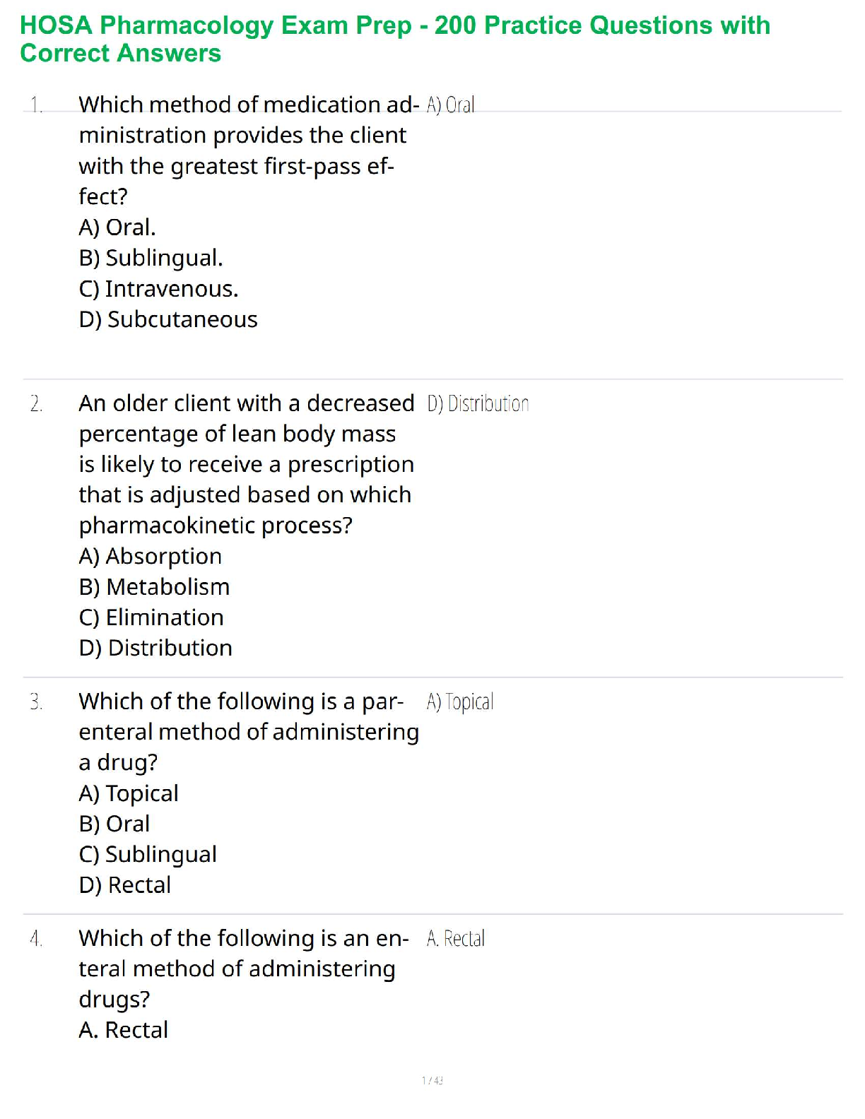 ATI RN PHARMACOLOGY > QUESTIONS & ANSWERS > HOSA Pharmacology Exam Prep - 200 Practice Questions with Correct Answers (All)