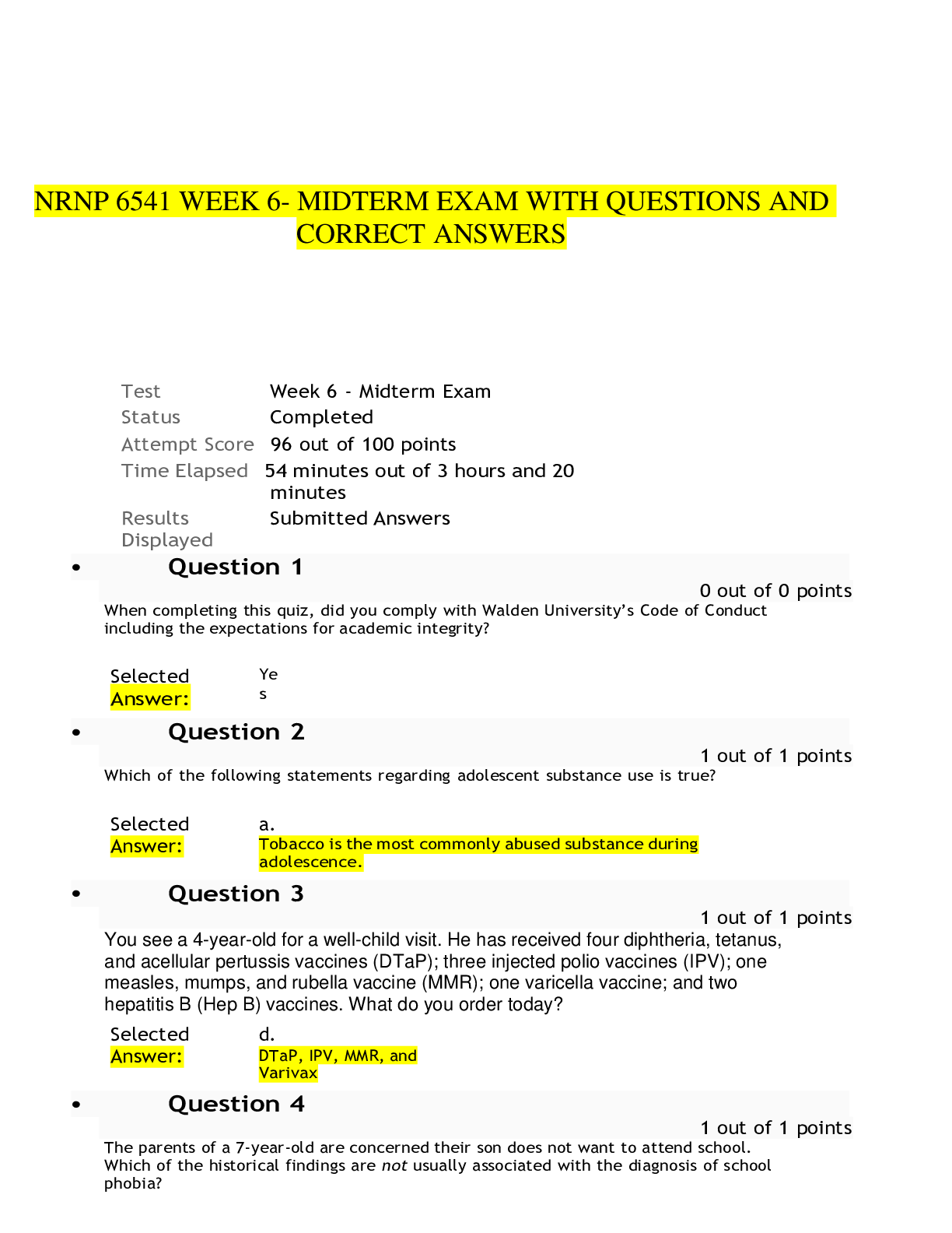 NURS 6541 > EXAM > NRNP 6541 WEEK 6- MIDTERM EXAM WITH QUESTIONS AND CORRECT ANSWERS (All)