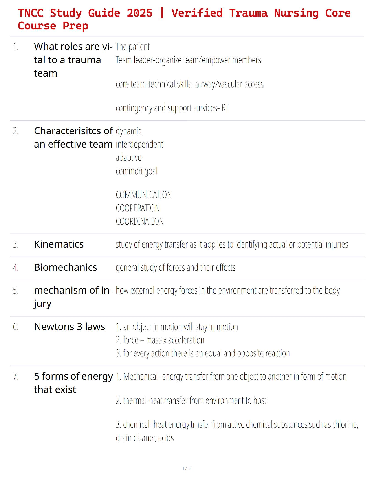 TNCC EXAM > STUDY GUIDE > TNCC Study Guide 2025 | Verified Trauma Nursing Core Course Prep (All)