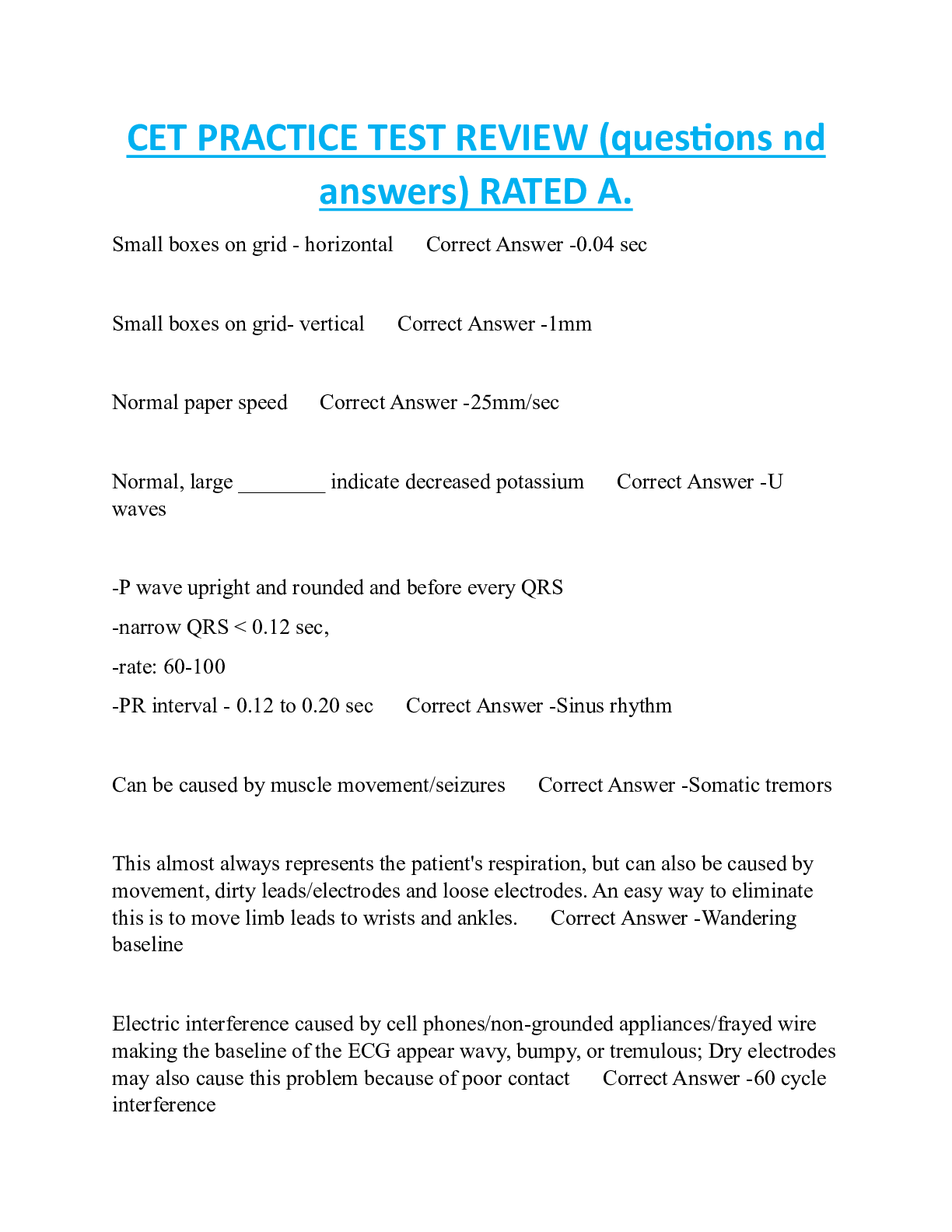 Electrical Engineering > EXAM > CET PRACTICE TEST REVIEW (questions nd answers) RATED A. (All)