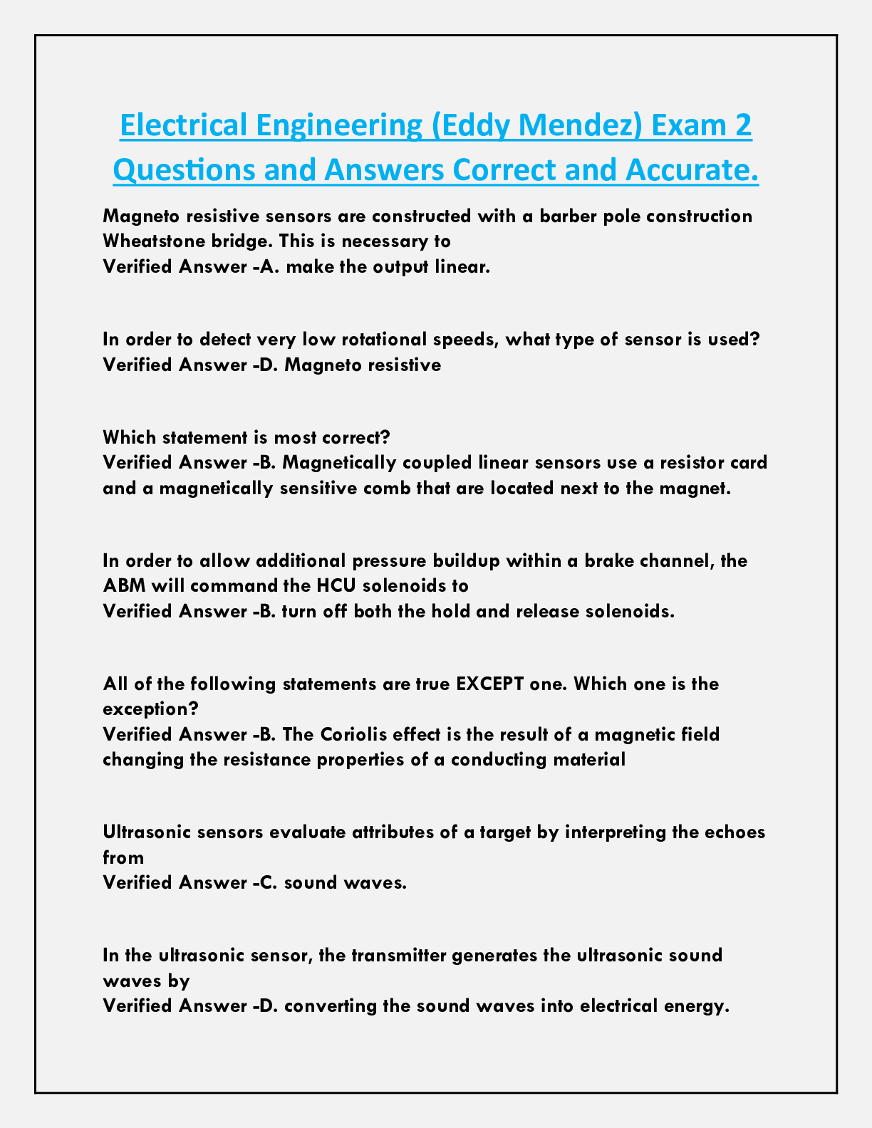 Electrical Engineering > EXAM REVIEW > Electrical Engineering (Eddy Mendez) Exam 2 Questions and Answers Correct and Accurate. (All)