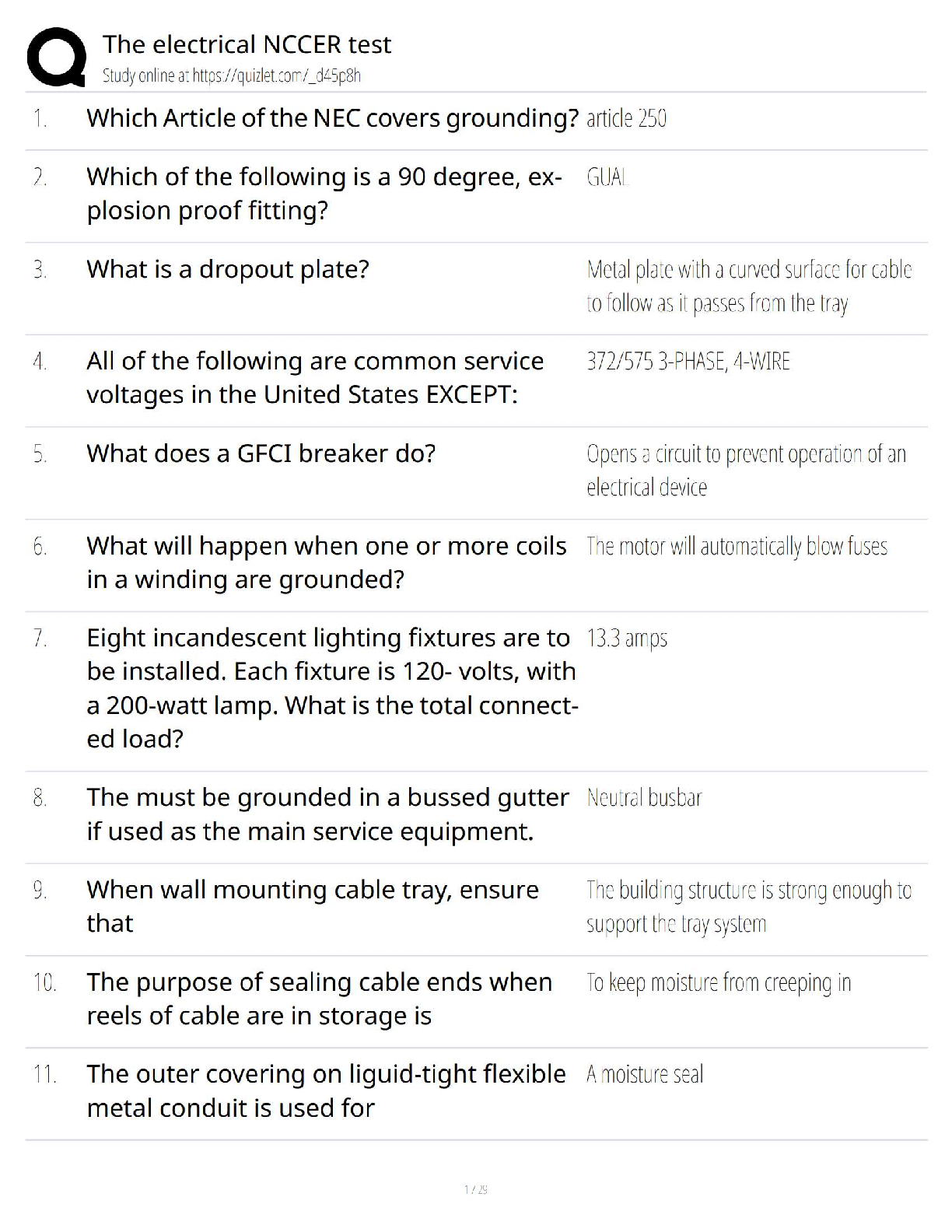 Electrical Engineering > EXAM REVIEW > The electrical NCCER test (All)