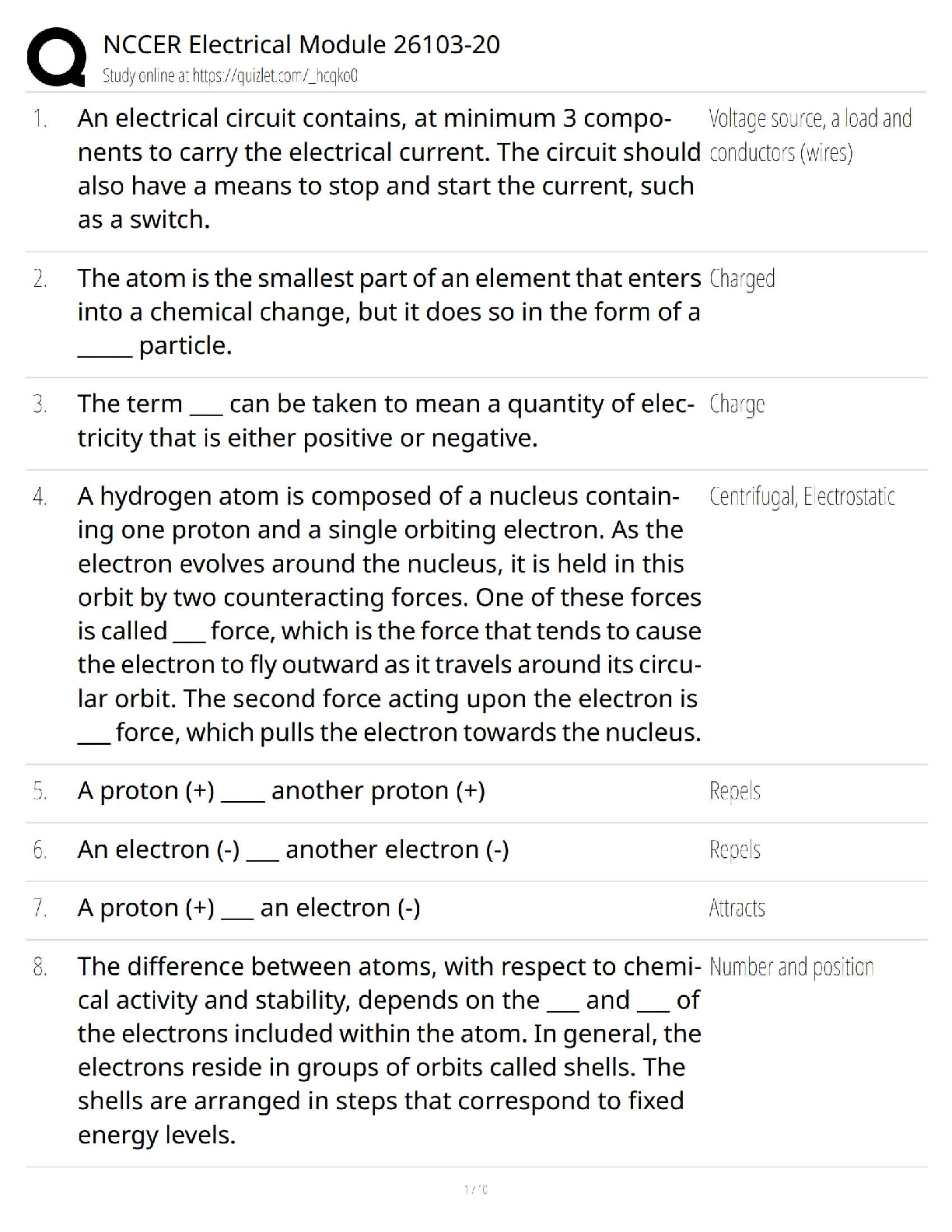 Electrical Engineering > EXAM REVIEW > NCCER Electrical Module 26103-20 (All)
