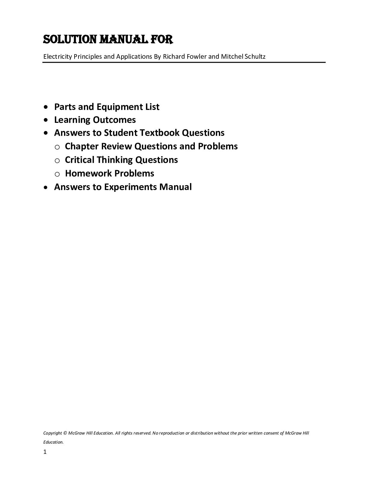 Electrical Engineering > SOLUTIONS MANUAL > Solution Manual For Electricity Principles and Applications By Richard Fowler and Mitchel Schultz (All)