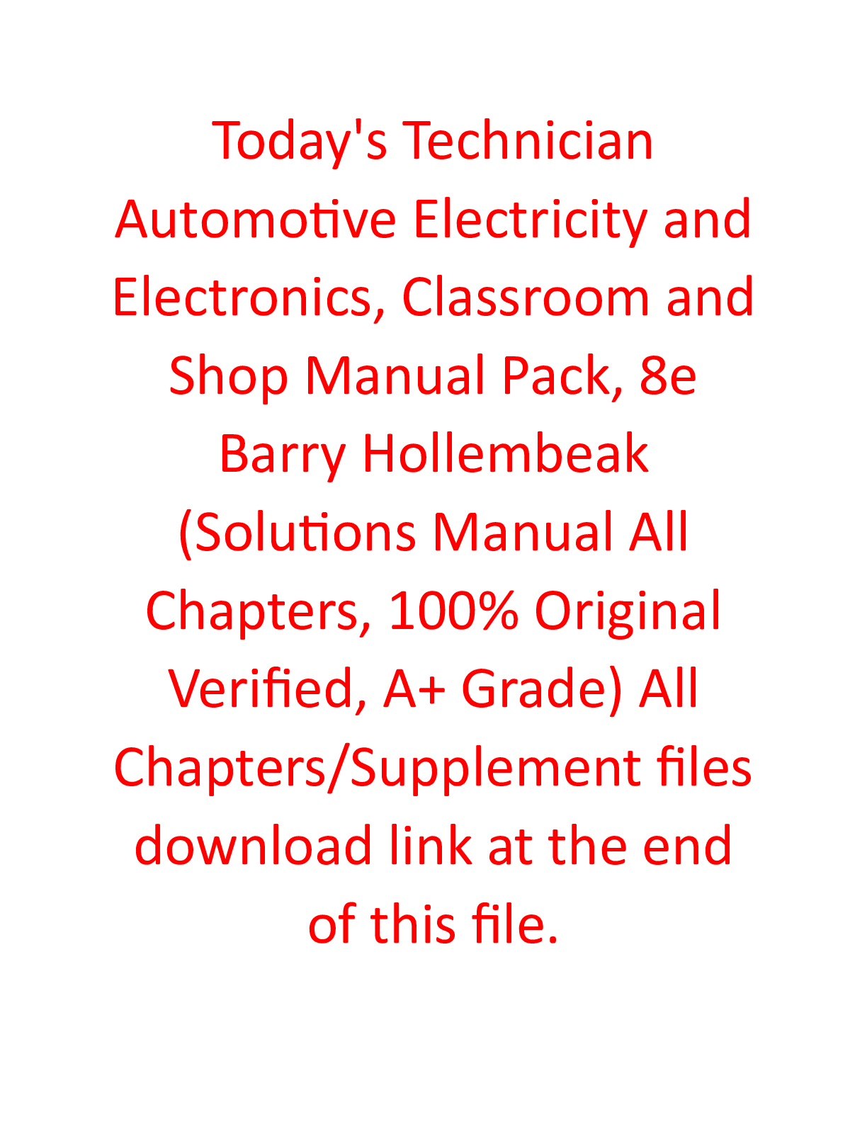 Electrical Engineering > SOLUTIONS MANUAL > Solutions Manual for Today's Technician Automotive Electricity and Electronics, Classroom and Shop Manual Pack 8th Edition By Barry Hollembeak (All Chapters, 100% Original Verified, A+ Grade) (All)