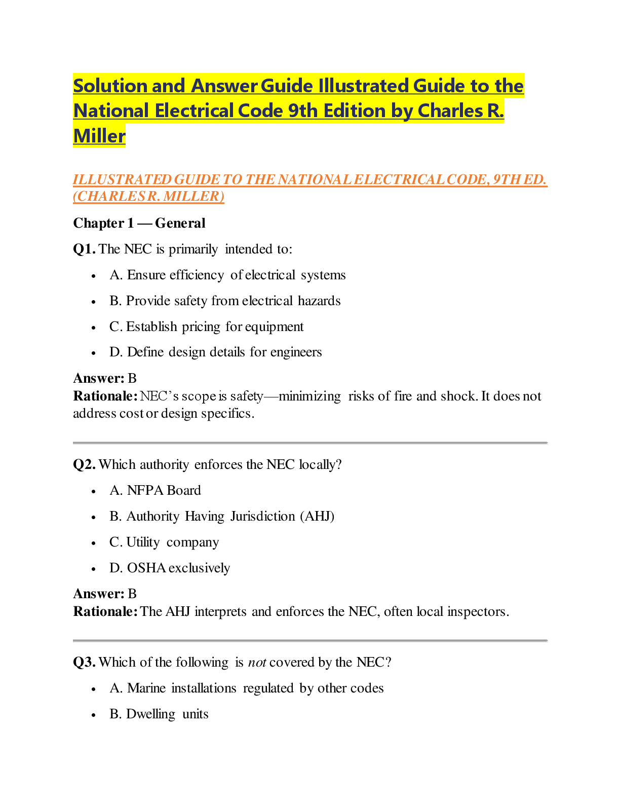 Electrical Engineering > TEST BANKS > Test Bank and Solution and Answer Guide Illustrated Guide to the National Electrical Code 9th Edition by Charles R. Miller (All)