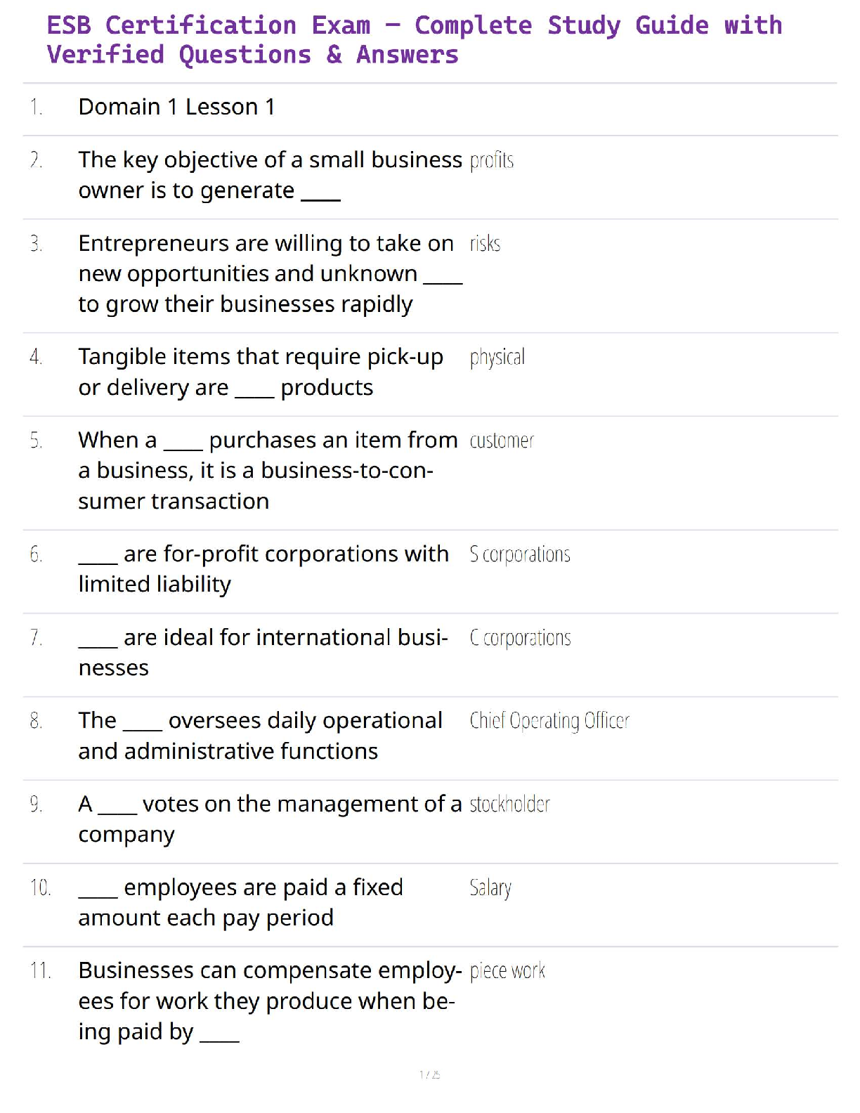 Electrical Engineering > QUESTIONS and ANSWERS > ESB Certification Exam – Complete Study Guide with Verified Questions & Answers (All)