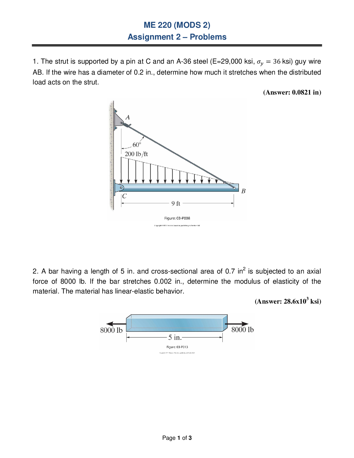 Electrical Engineering > QUESTIONS & ANSWERS > University of Waterloo - ME 220Assignment 2-Problems (2) (All)