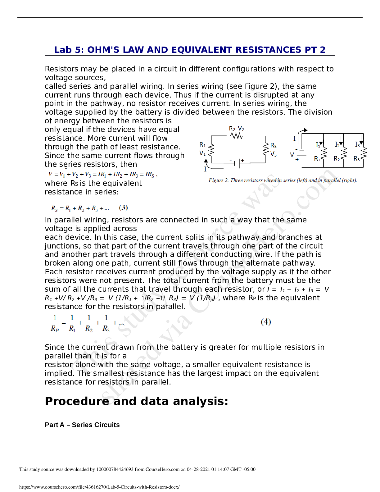 Electrical Engineering > Lab Experiment > University of Tennessee, ChattanoogaPHYSICS 1140Lab 5 Circuits with Resistors (All)