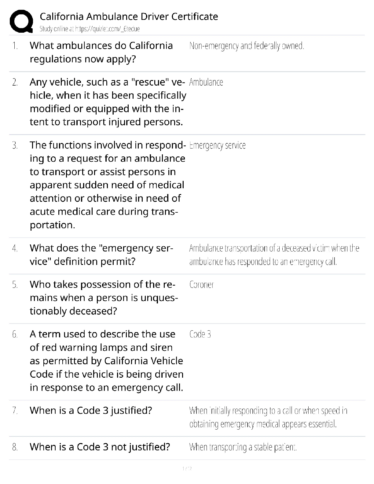DRIVERS ED AAA|AAA DRIVERS ED > QUESTIONS & ANSWERS > California Ambulance Driver Certificate / DMV Exam 2025 / Score 100% Study Guide & Practice Test (All)