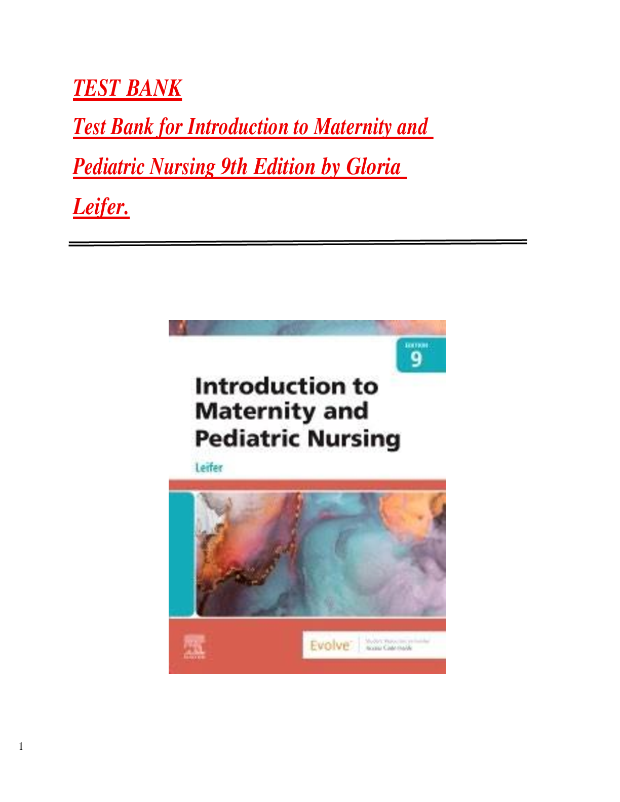 PEDIATRIC NURSING > TEST BANKS > Test Bank for Introduction to Maternity and Pediatric Nursing 9th Edition by Gloria Leifer. (All)