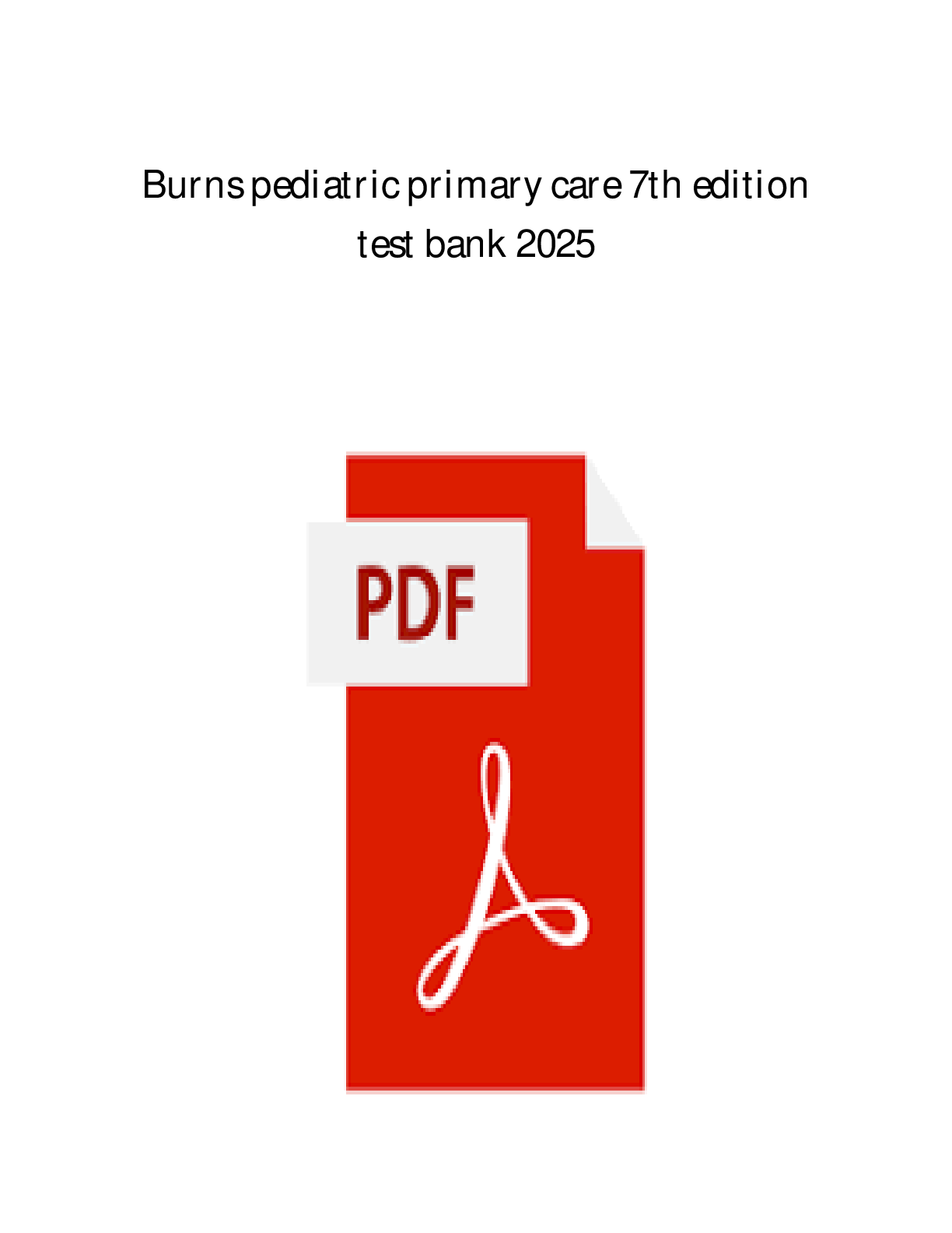 PEDIATRIC NURSING > TEST BANKS > Test Bank for Burns' Pediatric Primary Care 7Ed. Dawn Lee Garzon Maaks, Nancy Starr, Margaret Brady, Nan Gaylord, Martha Driessnack & Karen Duderstadt (All)