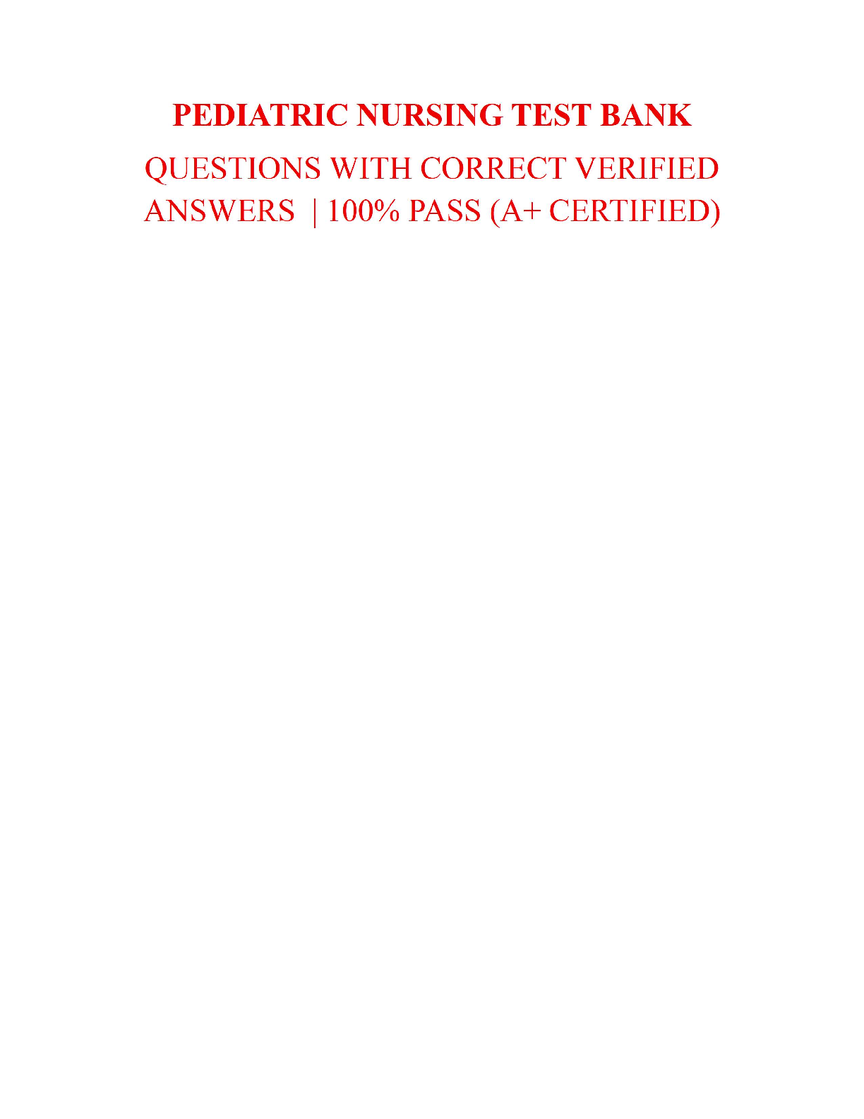 PEDIATRIC NURSING > TEST BANKS > Pediatric Nursing Exam Test Bank (2025) – Complete Questions & Elaborated Solutions | Verified Answers for Nursing Success (All)