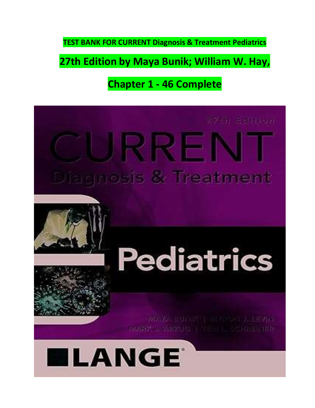 PEDIATRIC NURSING > TEST BANKS > CURRENT Diagnosis and Treatment Pediatrics 24th Edition Hay Test Bank | COMPLETE | Chapters 1-46 | Pediatric Nursing NCLEX Questions & Answers | Rationales | Instant Download (All)