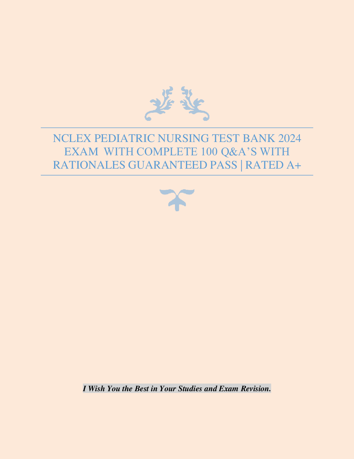 PEDIATRIC NURSING > EXAMs > NCLEX PEDIATRIC NURSING TEST BANK 2024 EXAM WITH COMPLETE 100 Q&A’S WITH RATIONALES GUARANTEED PASS | RATED A+ (All)
