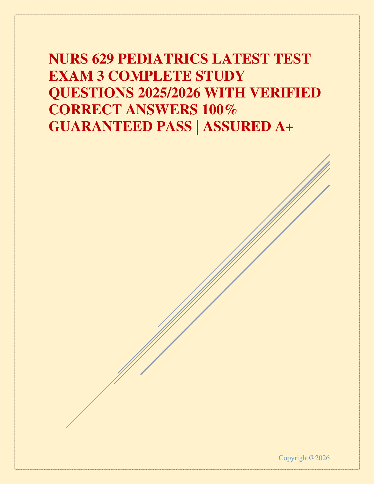 PEDIATRIC NURSING > EXAMs > NURS 629 PEDIATRICS LATEST TEST EXAM 3 COMPLETE STUDY QUESTIONS 2025/2026 WITH VERIFIED CORRECT ANSWERS 100% GUARANTEED PASS | ASSURED A+ (All)