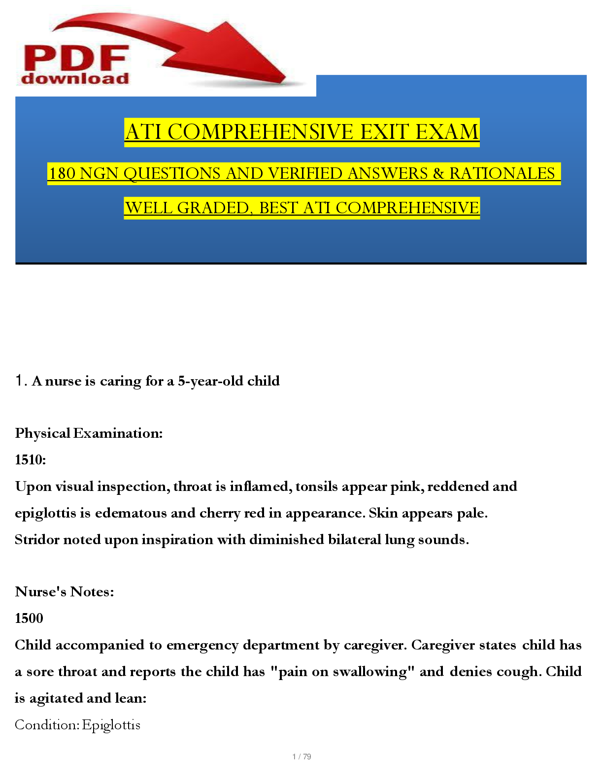 ATI RN COMPREHENSIVE PREDICTOR > EXAM > ATI COMPREHENSIVE EXIT EXAM 2023 | 180 Q&A - ANSWER KEY STARTS ON PAGE 144 (All)