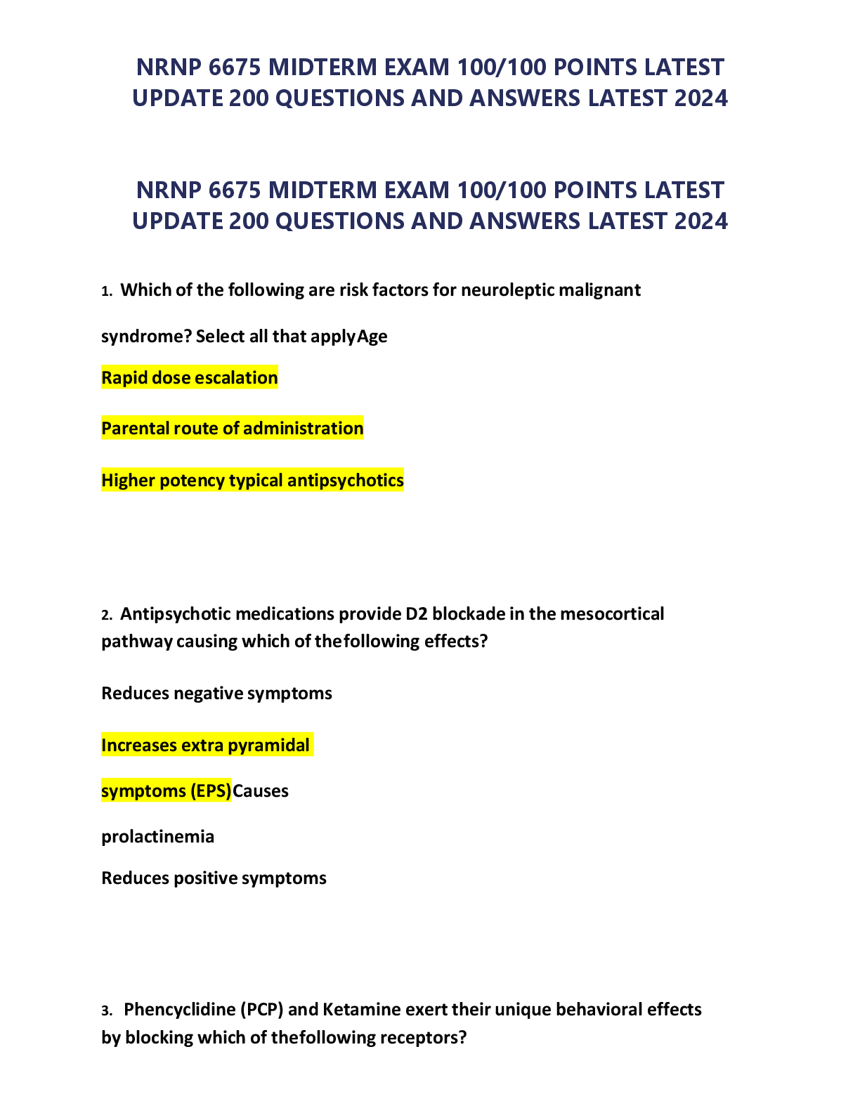 NRNP 6635 > EXAM/TEST TEMPLATE > NRNP 6675 MIDTERM EXAM 100/100 POINTS LATEST UPDATE 200 QUESTIONS AND ANSWERS LATEST A+ (All)