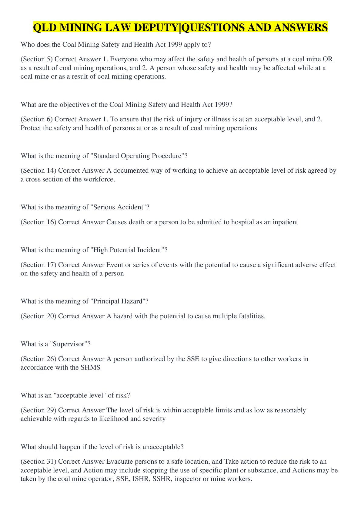 Mining > QUESTIONS & ANSWERS > QLD MINING LAW DEPUTY|QUESTIONS AND ANSWERS (All)