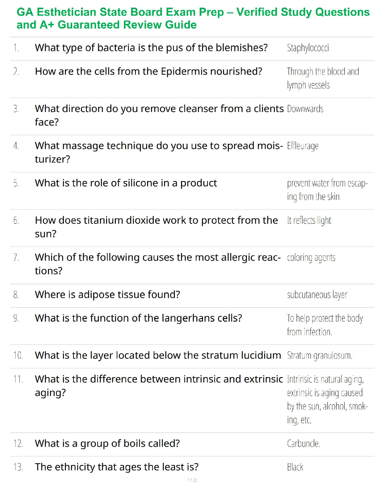 TDLR Esthetics > QUESTIONS & ANSWERS > GA Esthetician State Board Exam Prep – Verified Study Questions and A+ Guaranteed Review Guide (All)