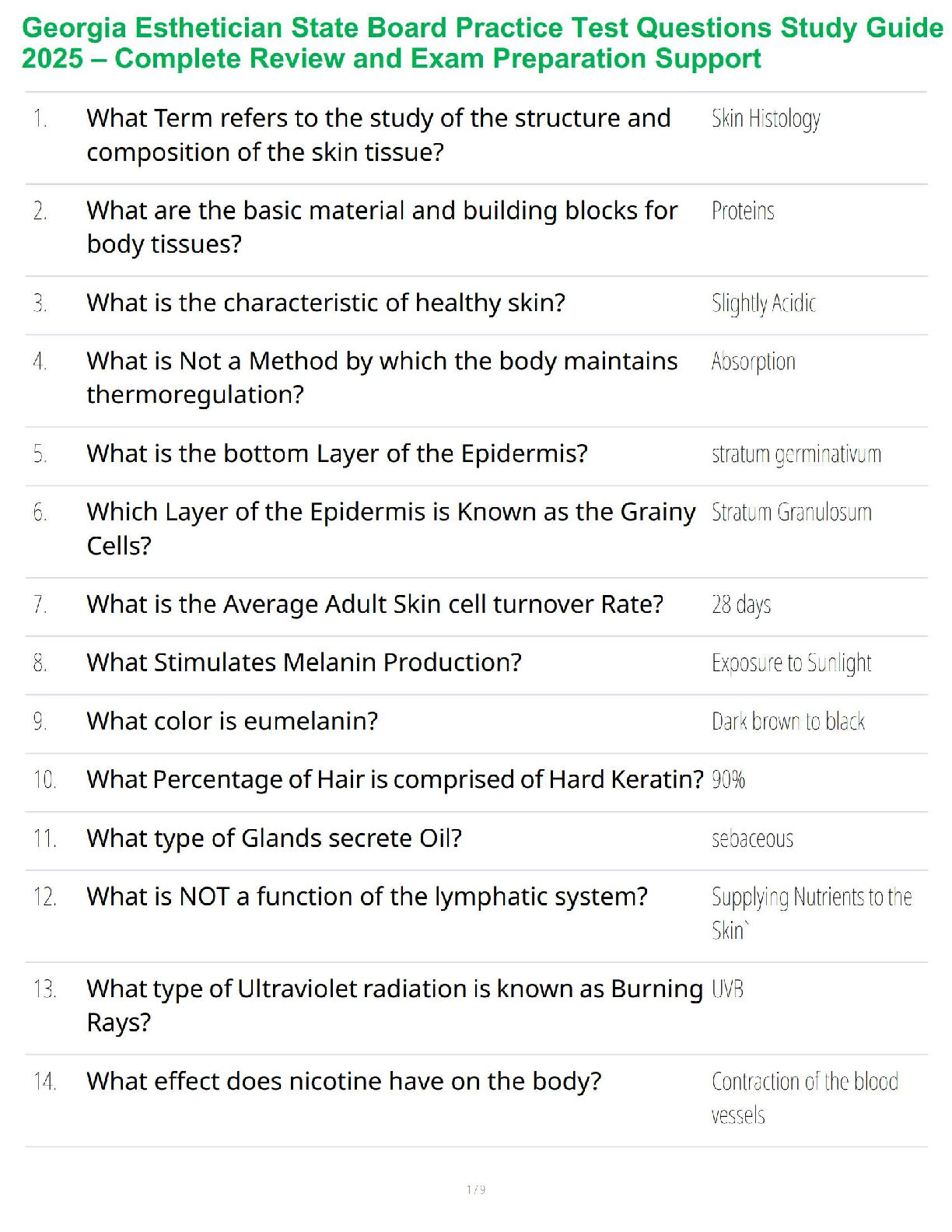 TDLR Esthetics > STUDY GUIDE > Georgia Esthetician State Board Practice Test Questions Study Guide 2025 – Complete Review and Exam Preparation Support (All)