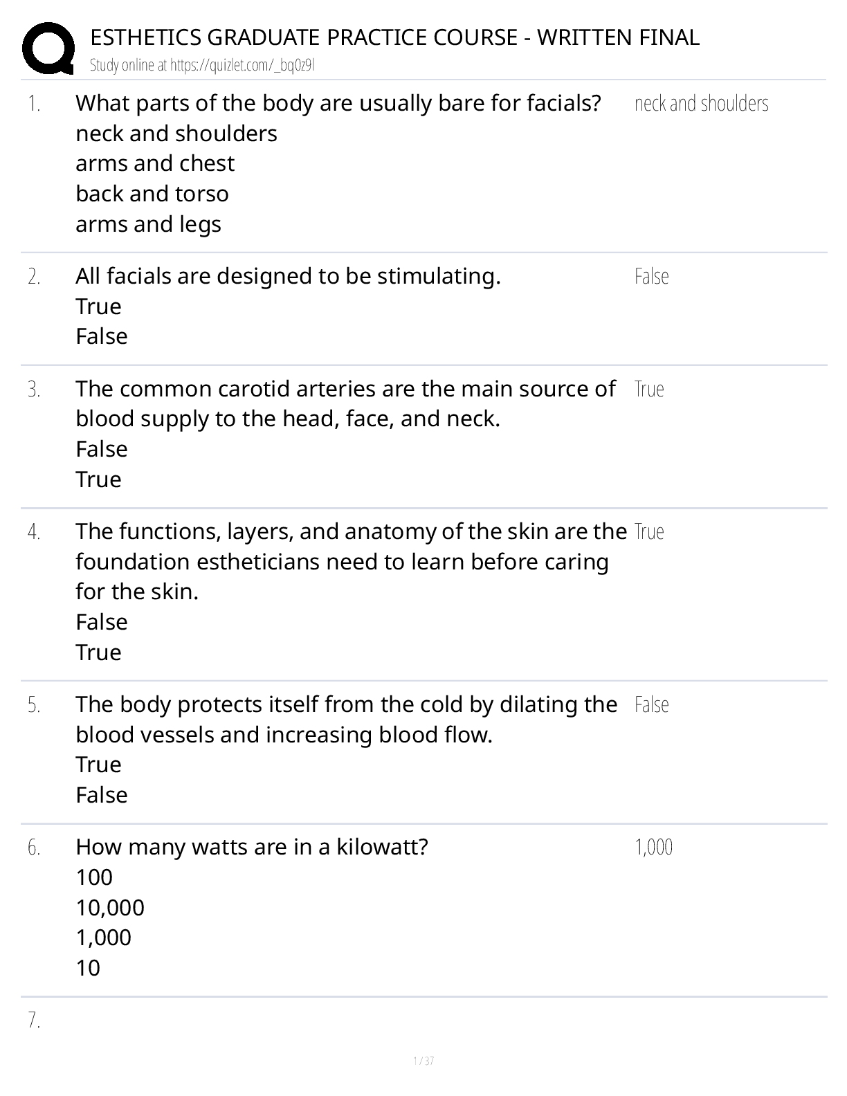 TDLR Esthetics > STUDY GUIDE > Esthetics Graduate Practice Course — Written Final Class Notes, Study Guide & Test Bank (All)