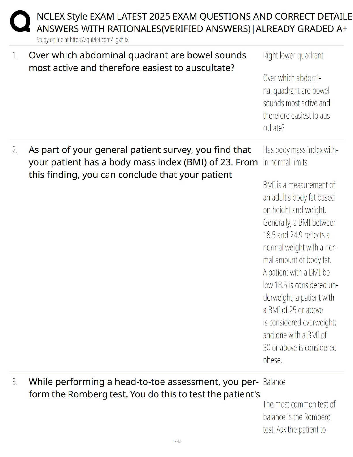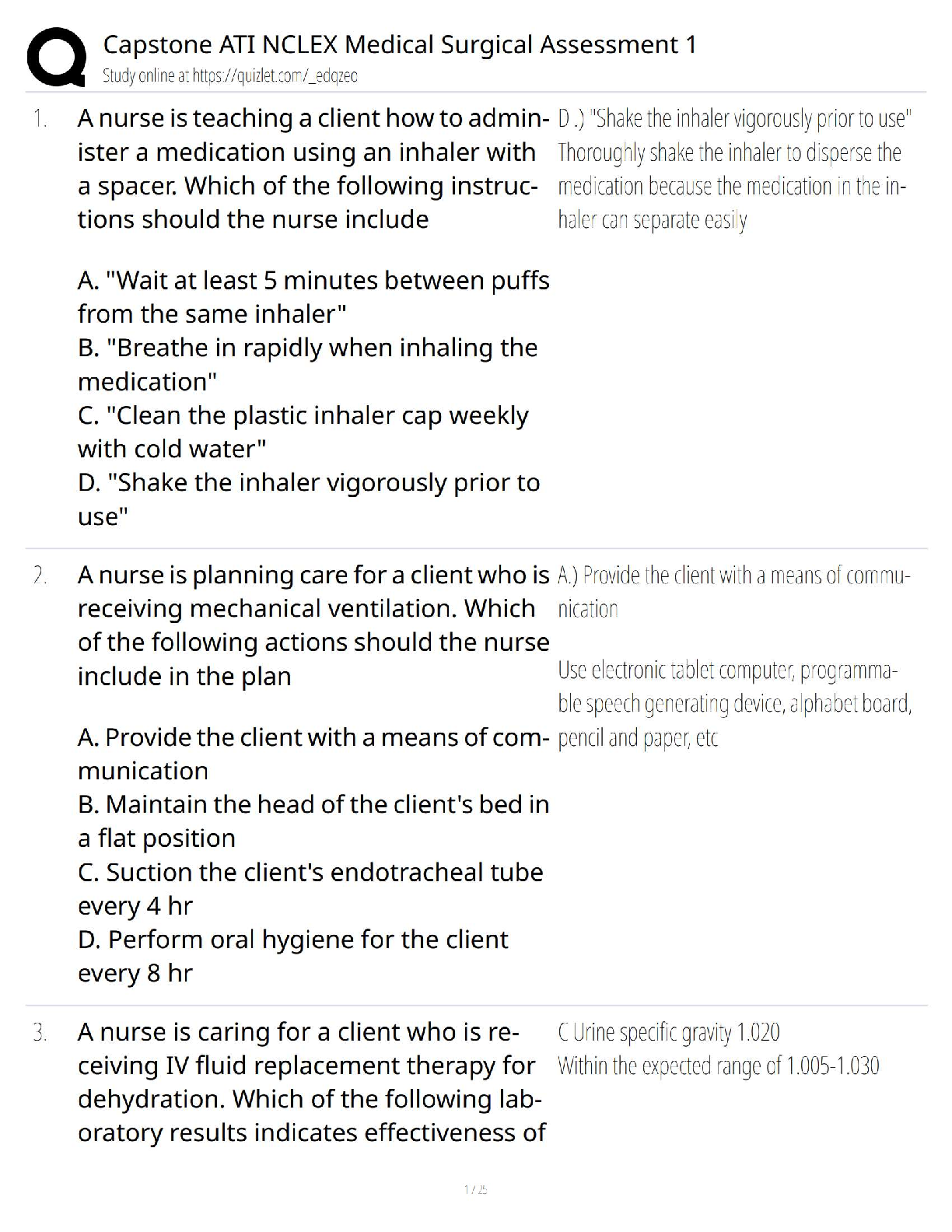 HESI NCLEX-RN Fundamentals > QUESTIONS & ANSWERS > Capstone ATI NCLEX / Medical-Surgical Assessment 1 / Test Bank / Questions & Answers / 2025 Update (All)