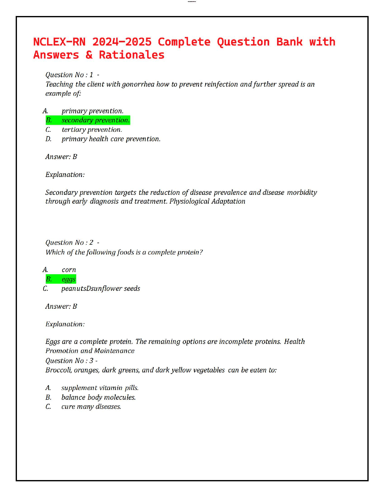 HESI NCLEX-RN Fundamentals > QUESTIONS and ANSWERS > NCLEX-RN 2024–2025 Complete Question Bank with Answers & Rationales (All)