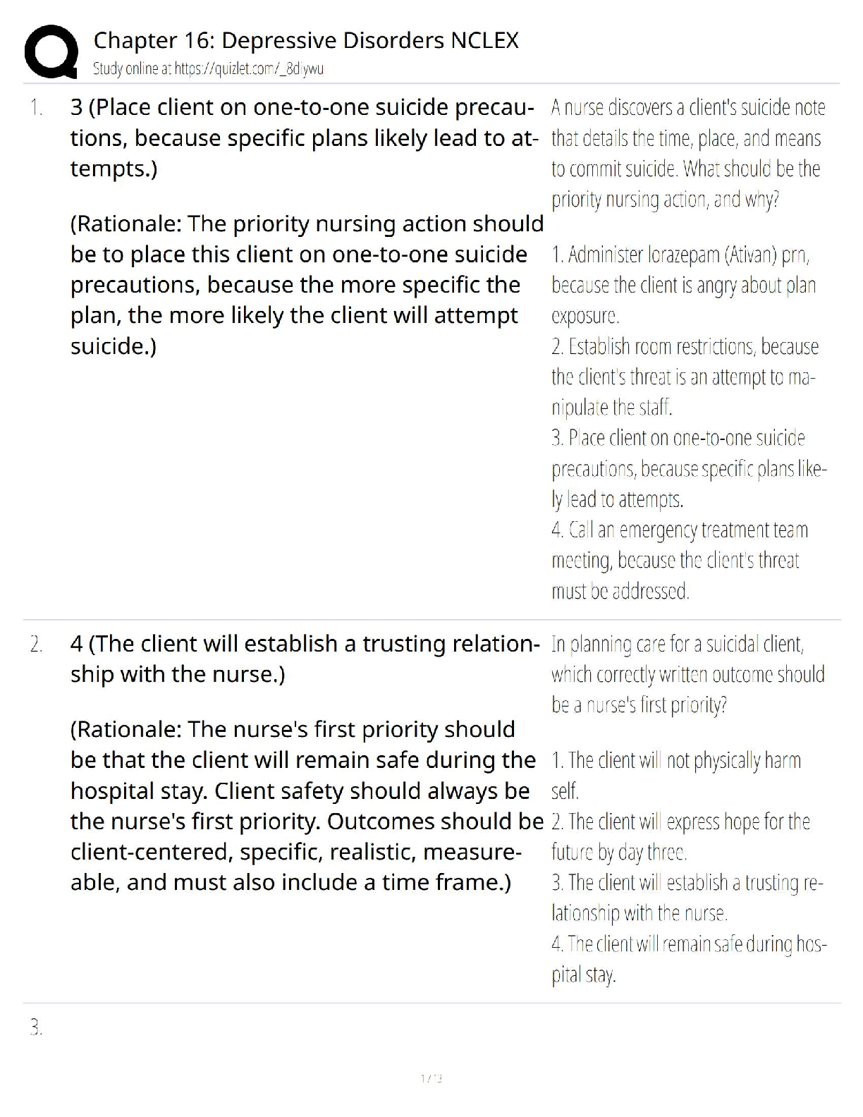 HESI NCLEX-RN Fundamentals > QUESTIONS & ANSWERS > Chapter 16 Depressive Disorders NCLEX Questions / 2025 Update / Score 100% Study Guide & Test Bank (All)
