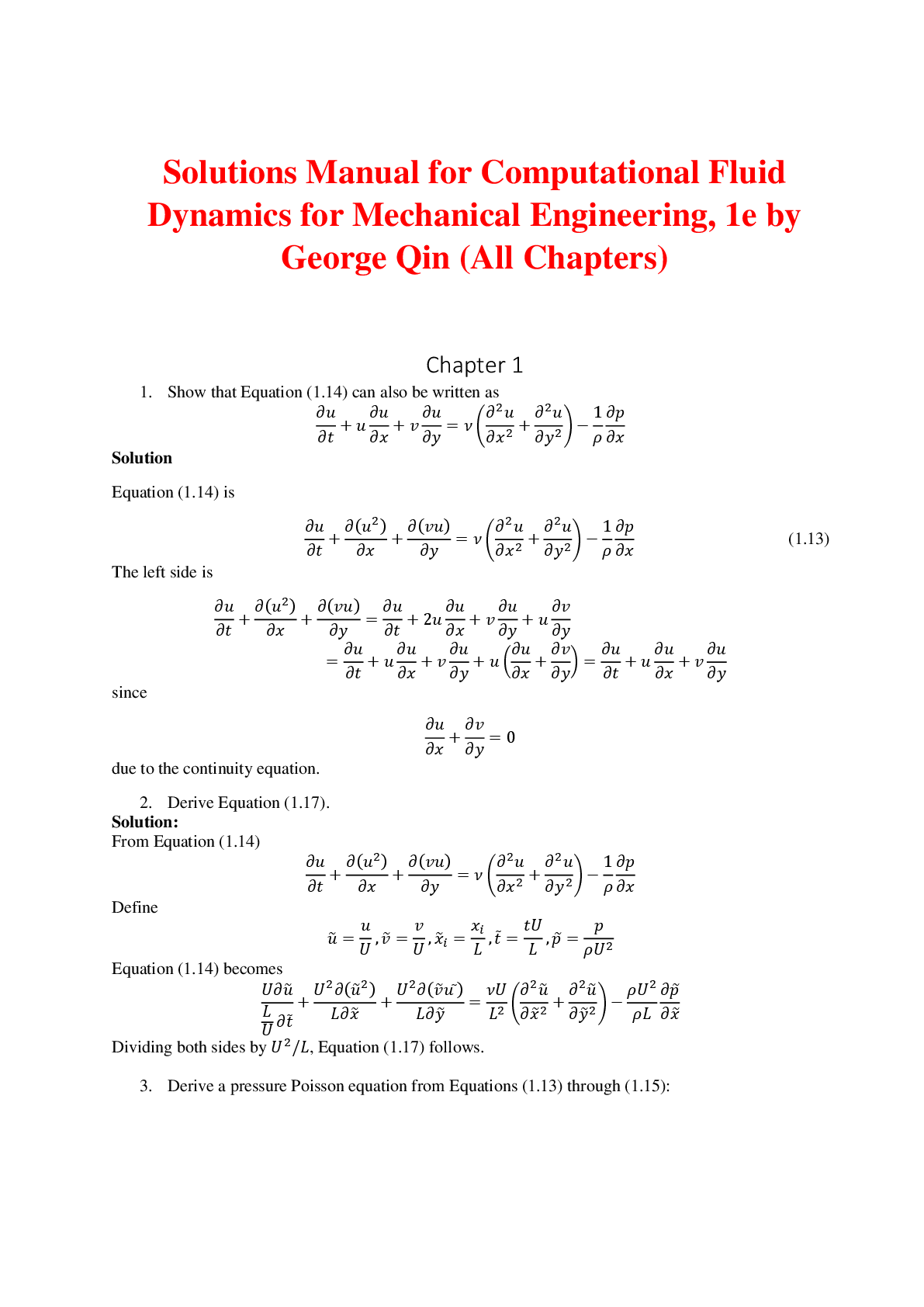 Fluid Dynamics > SOLUTIONS MANUAL > Solutions Manual for Computational Fluid Dynamics for Mechanical Engineering, 1st Edition by George Qin (All Chapters) (All)