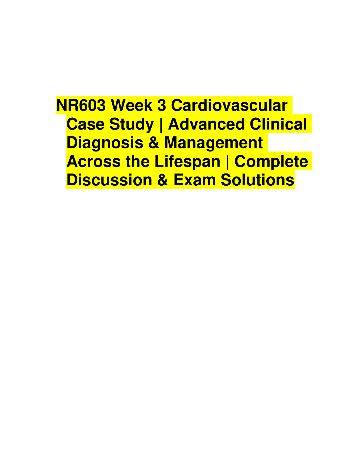 CARDIOVASCULAR > EXAM > NR603 Week 3 Cardiovascular Case Study | Advanced Clinical Diagnosis & Management Across the Lifespan | Complete Discussion & Exam Solutions A+ (All)