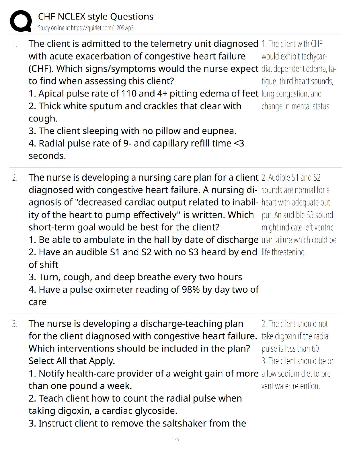 CARDIOVASCULAR > QUESTIONS and ANSWERS > Congestive Heart Failure (CHF) NCLEX-Style Questions and Answers / Cardiac Med-Surg Nursing / 2025 NCLEX Review (All)
