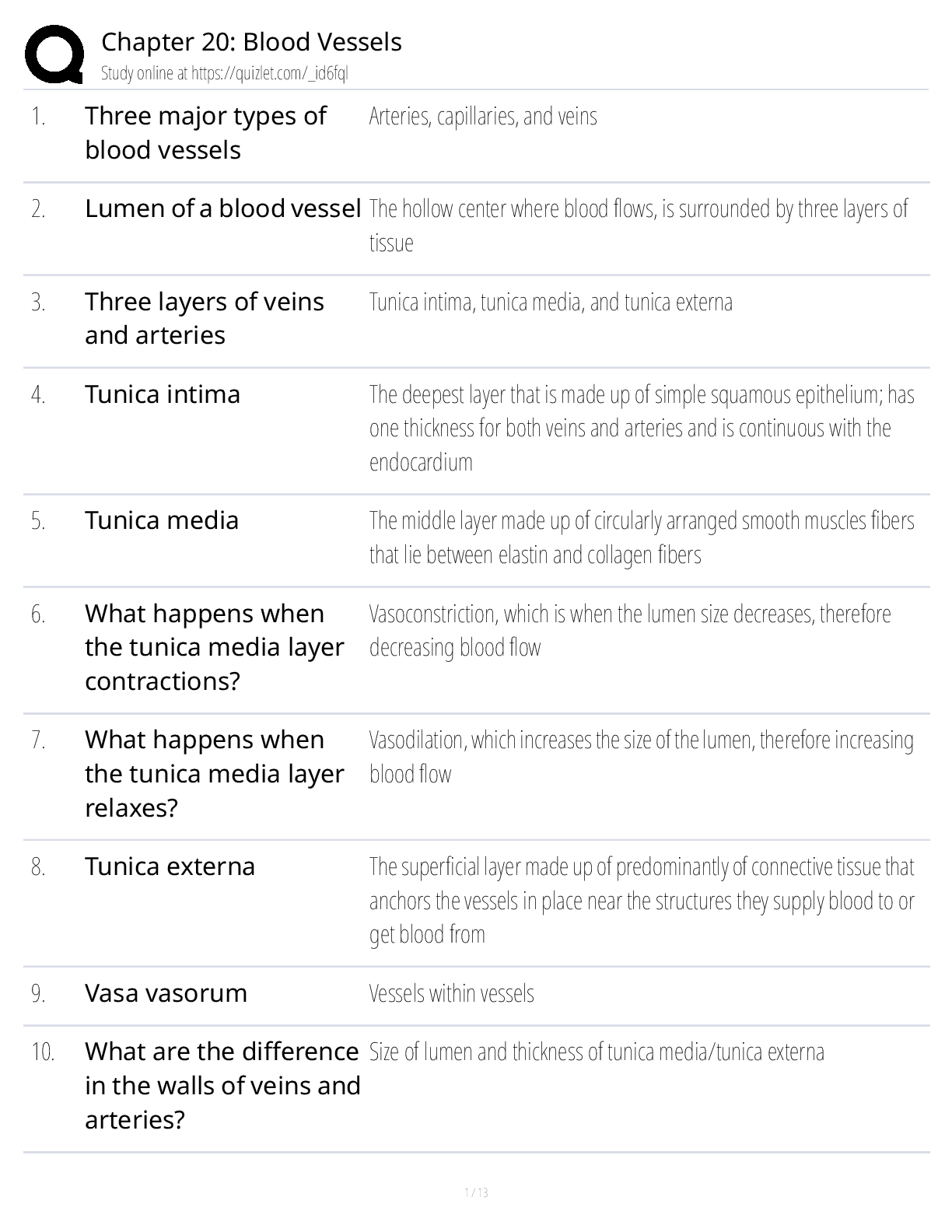 CARDIOVASCULAR > TEST BANKS > Blood Vessels — Class Notes, Study Guide & Test Bank (Cardiovascular System Anatomy & Physiology Prep) (All)