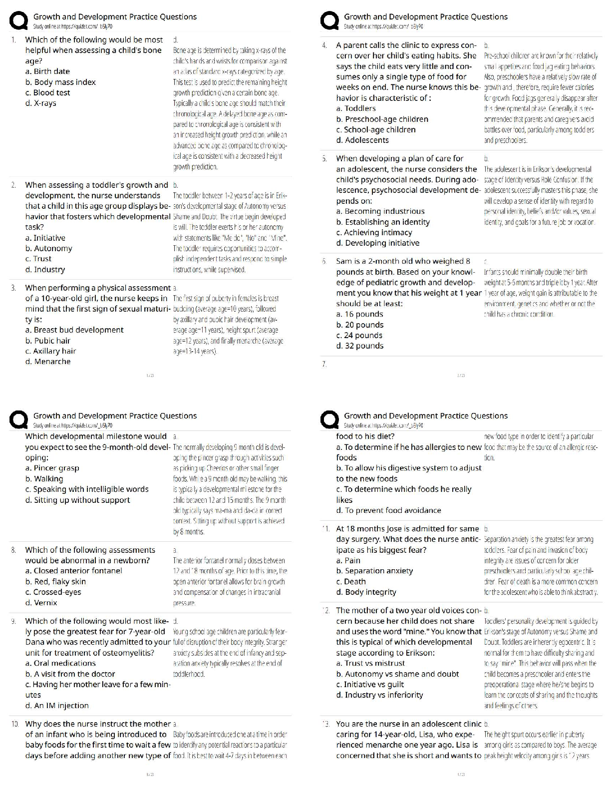 NCLEX RN 3 > QUESTIONS & ANSWERS > Growth and Development Practice Questions / 2025 Update / New Version / Score 100% Study Guide & NCLEX Prep (All)