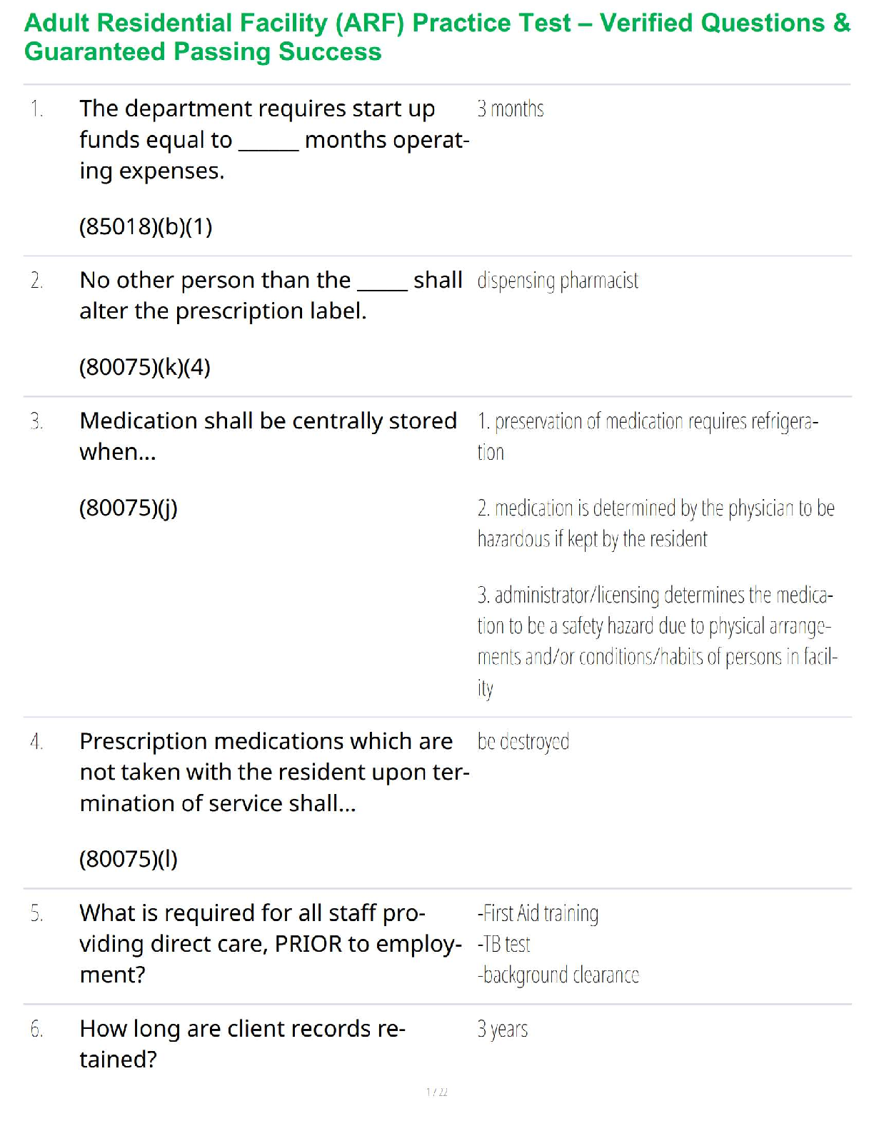RN Community Health > STUDY GUIDE > Adult Residential Facility (ARF) Practice Test – Verified Questions & Guaranteed Passing Success (All)