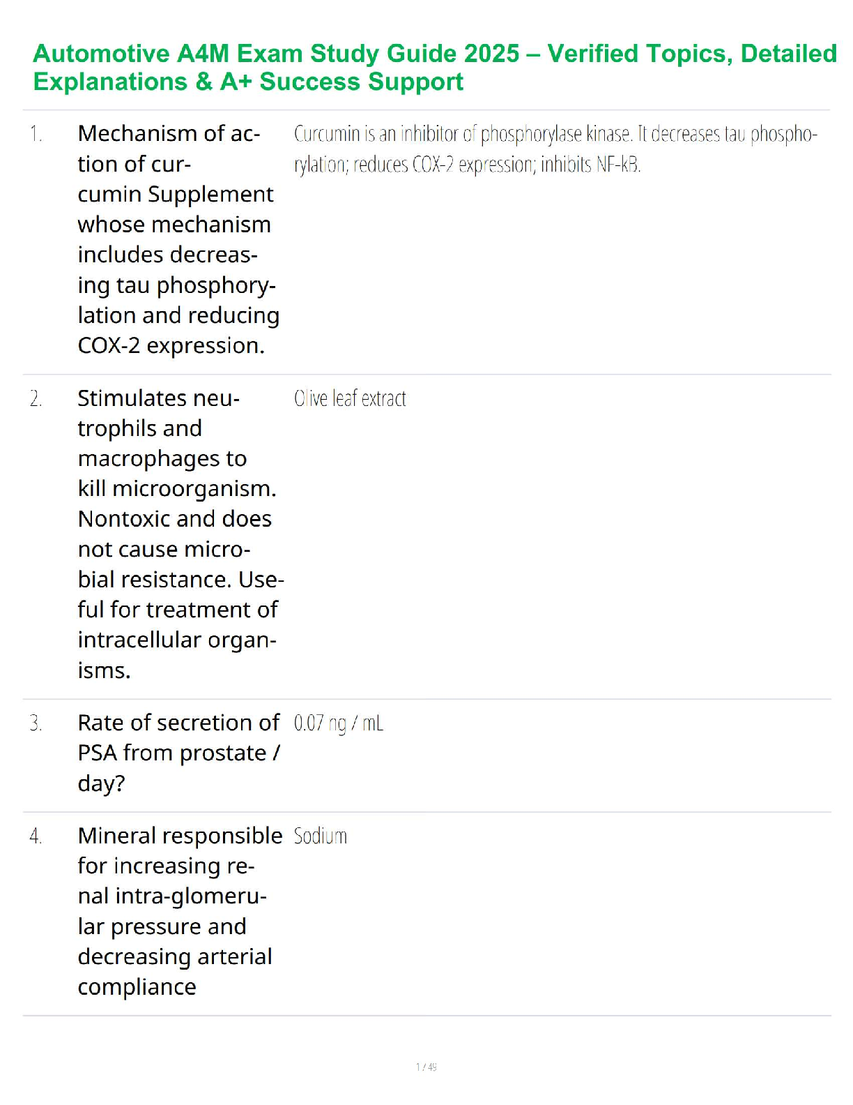 Mechanical Engineering > STUDY GUIDE > Automotive A4M Exam Study Guide 2025 – Verified Topics, Detailed Explanations & A+ Success Support (All)